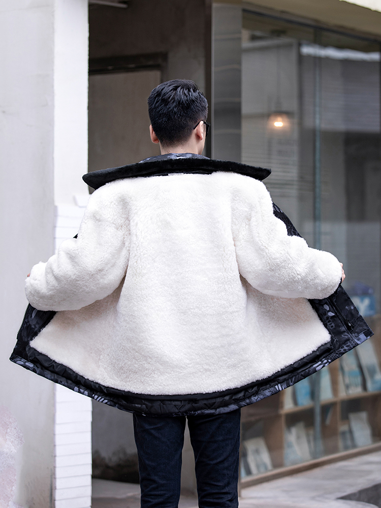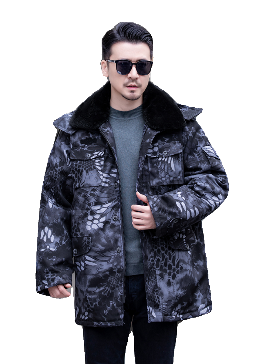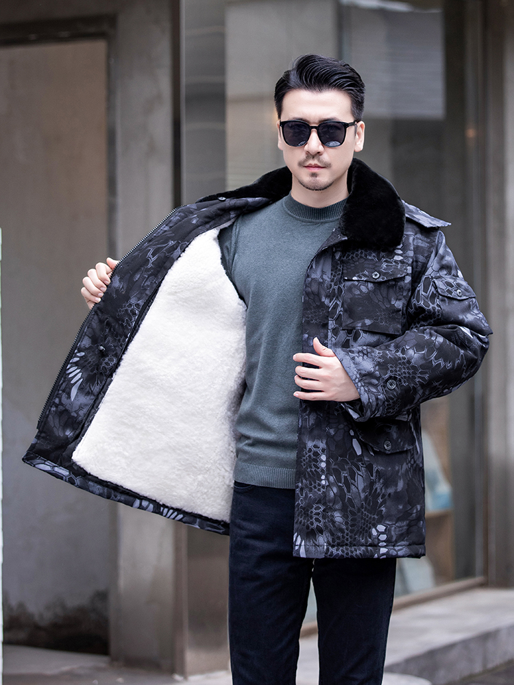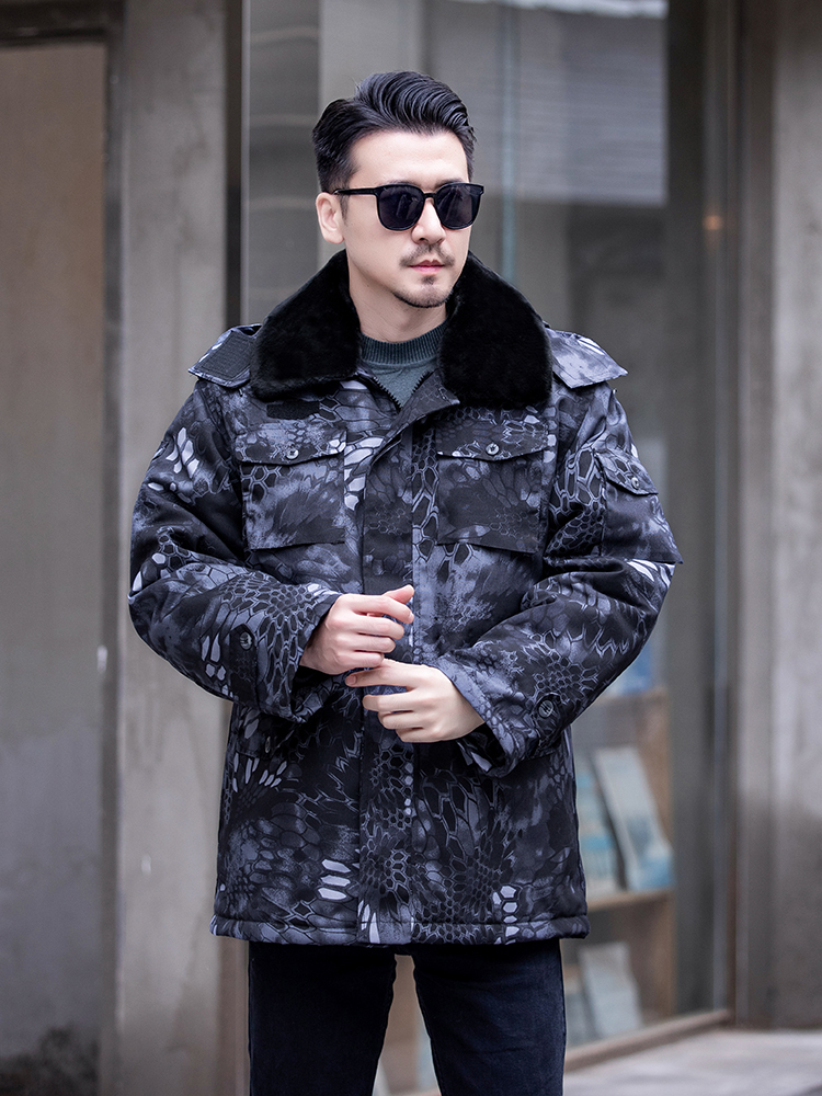 迷彩羊皮军棉大衣男保暖冬季加厚冷库防寒服保安棉袄东北羊毛大衣