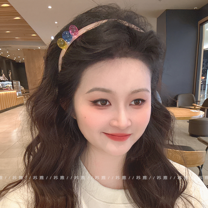 多巴胺彩虹珠子带齿防滑细发箍女2025新款细头箍碎发发卡发窟头饰