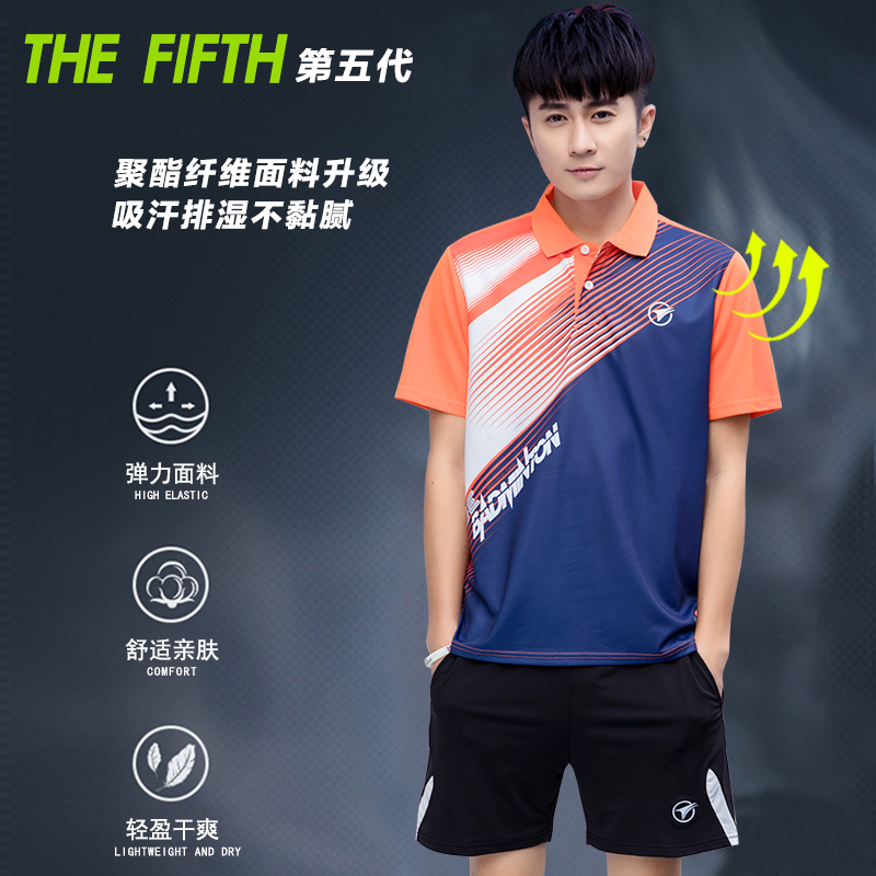 速干羽毛球服套装男乒乓球衣翻领