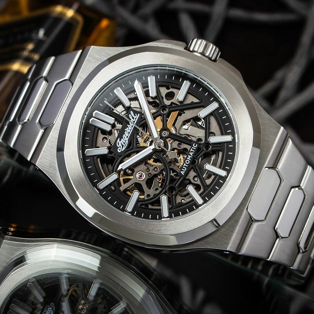 代购正品ingersoll英格索尔手表男间金钢带背透镂空自动机械男表