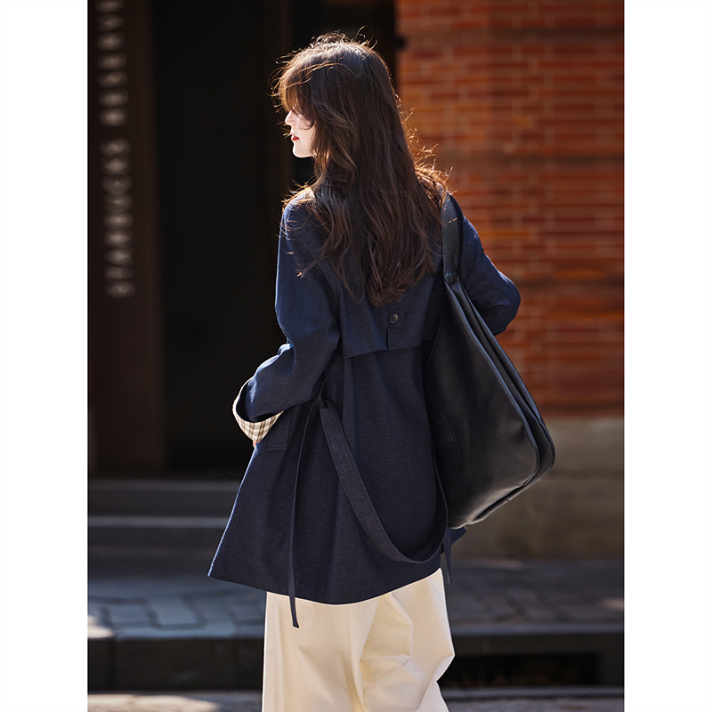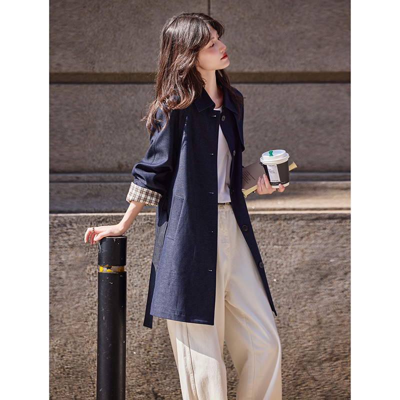 休闲简约中长款风衣气质风2025年秋季新款翻领夹克外套上衣女装