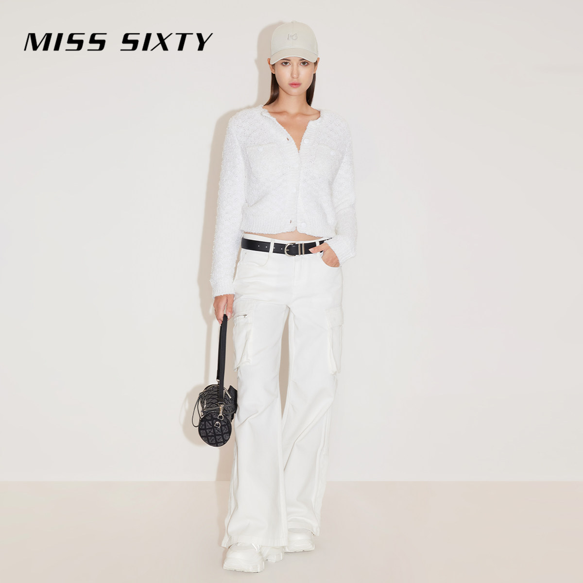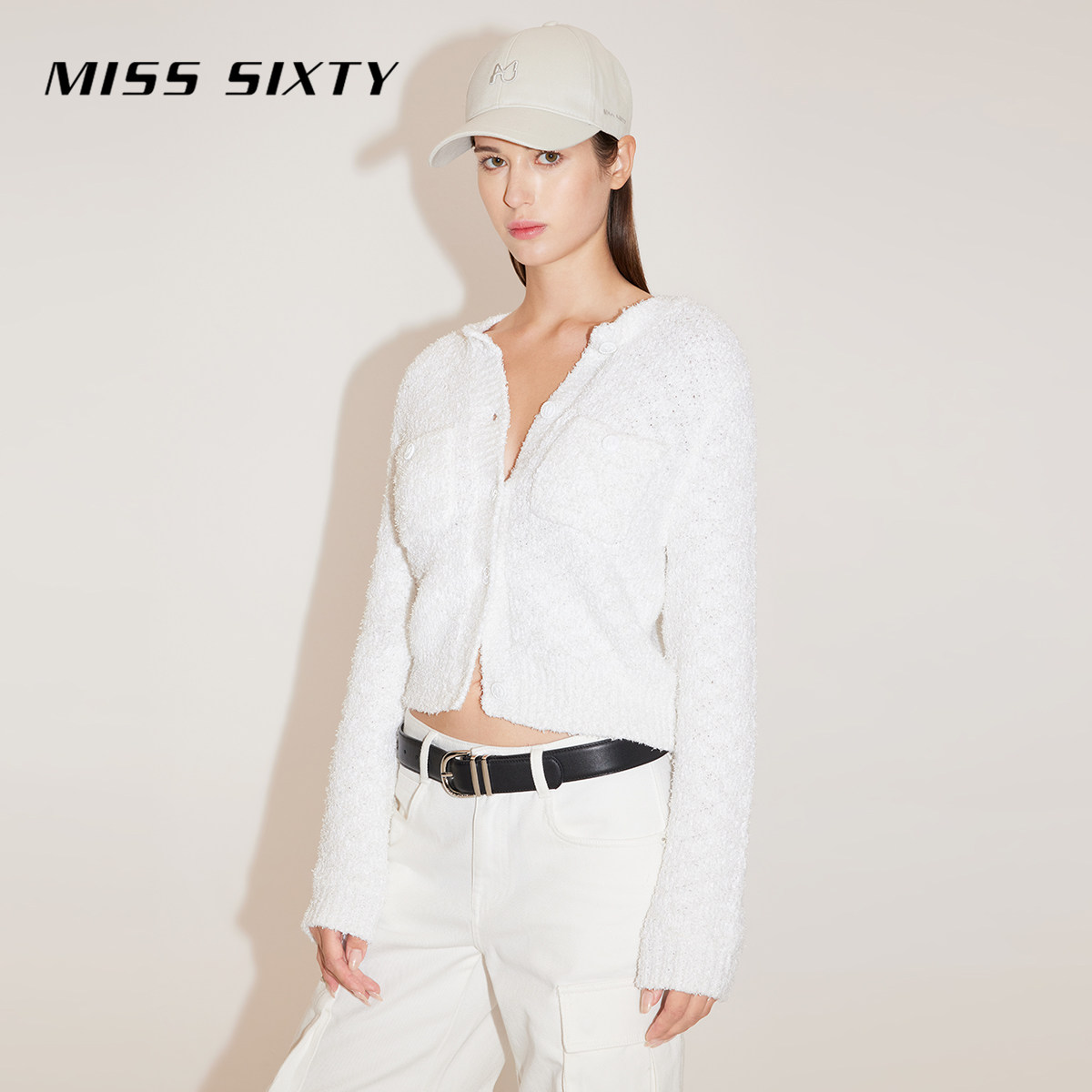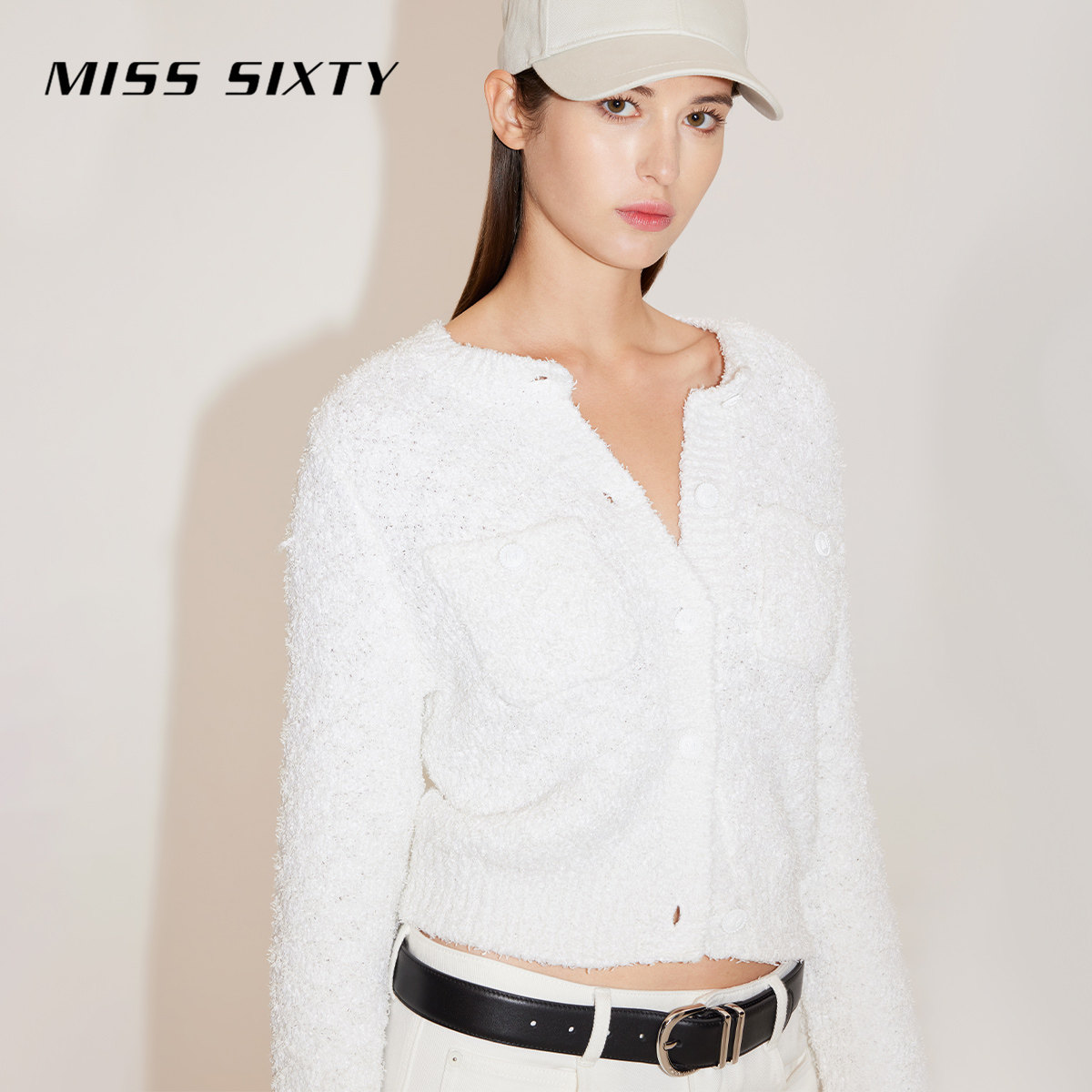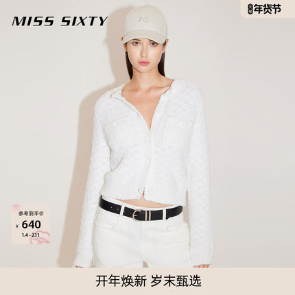 Miss Sixty针织衫外套女圆领复古格纹开衫外搭修身短显瘦上衣毛衣