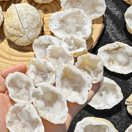 摩洛哥天然玛瑙白晶洞装饰白水晶原石聚宝盆财富转移水晶簇矿标
