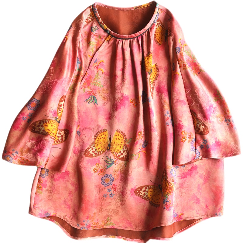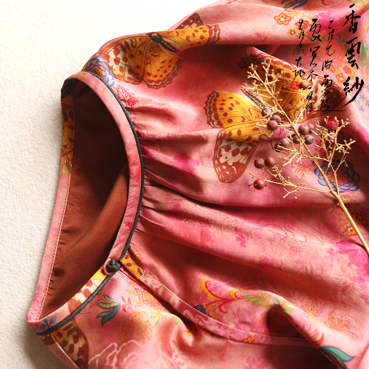 云澍原创中国风女装 年轻款花罗香云纱复古中式盘扣上衣桑蚕丝T恤