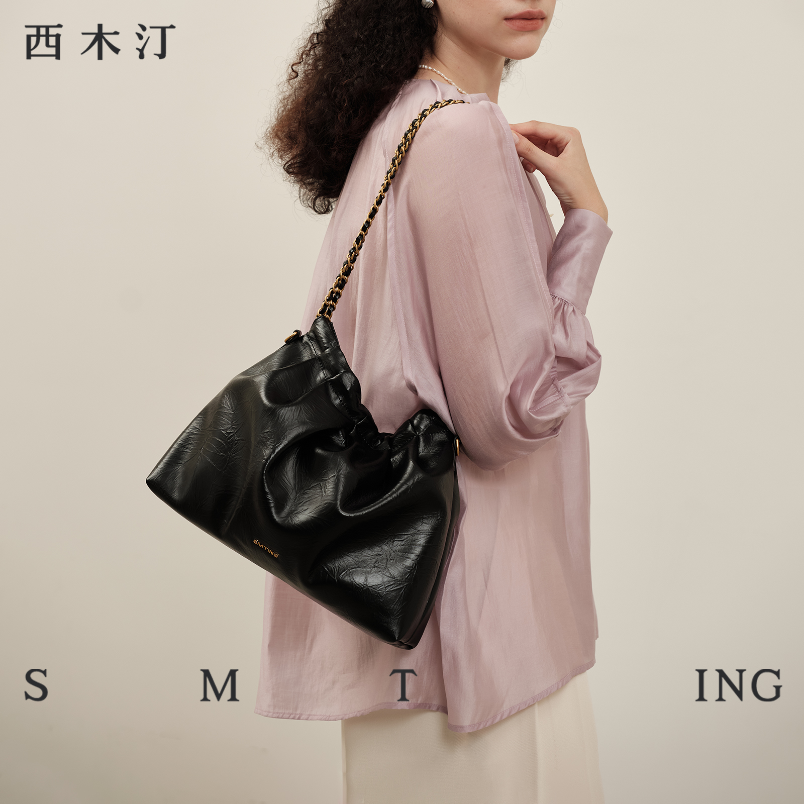 【西木汀】织朵云 小众链条托特包女牛皮大容量斜挎单肩流浪包包