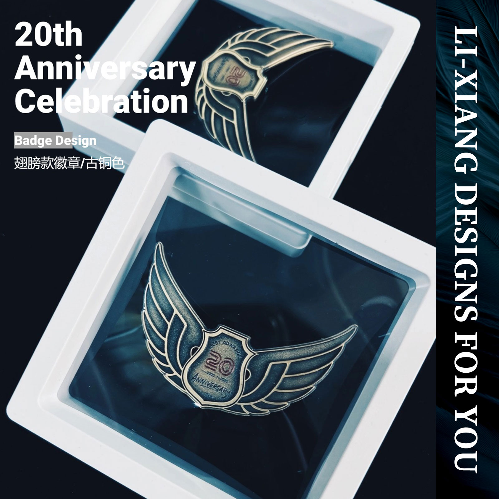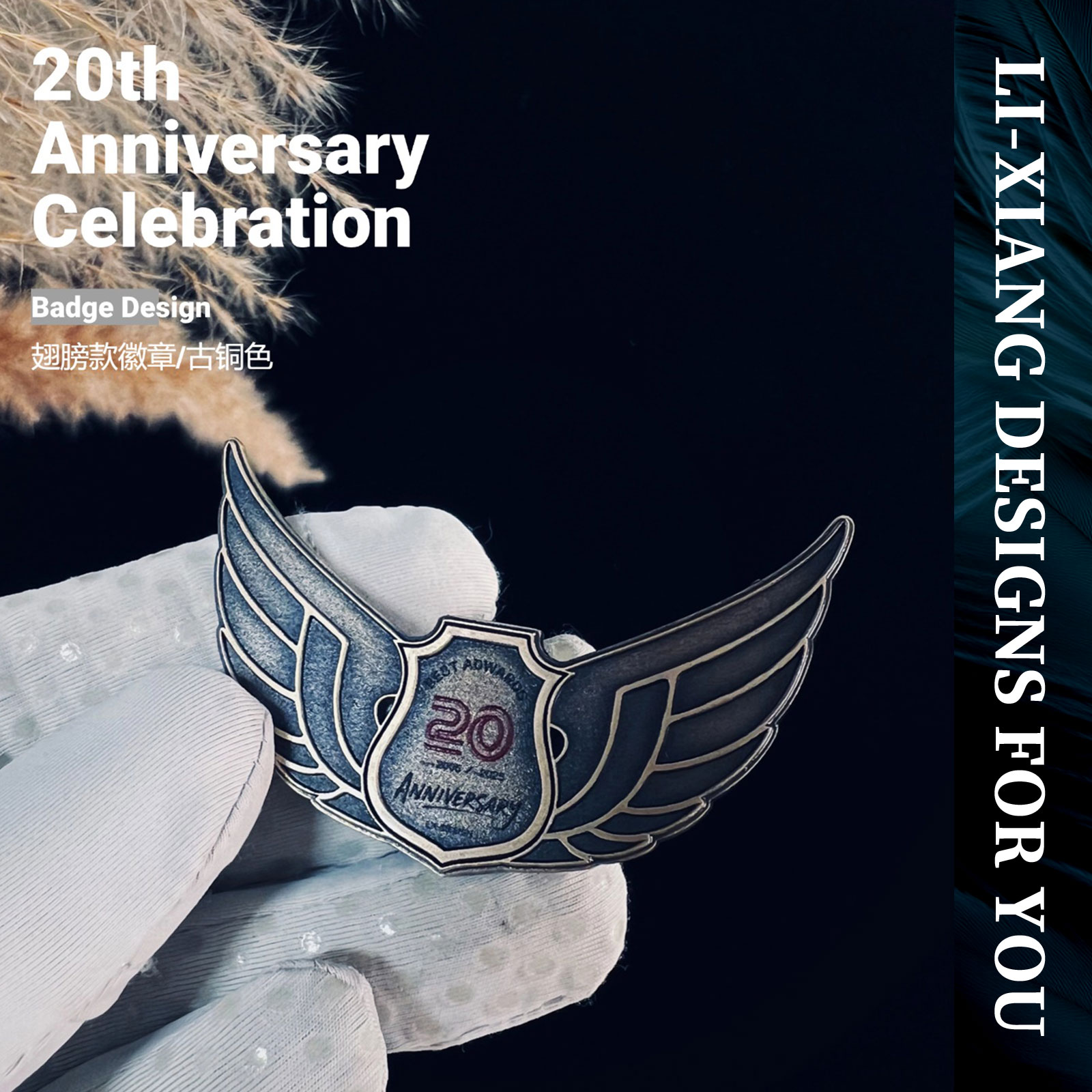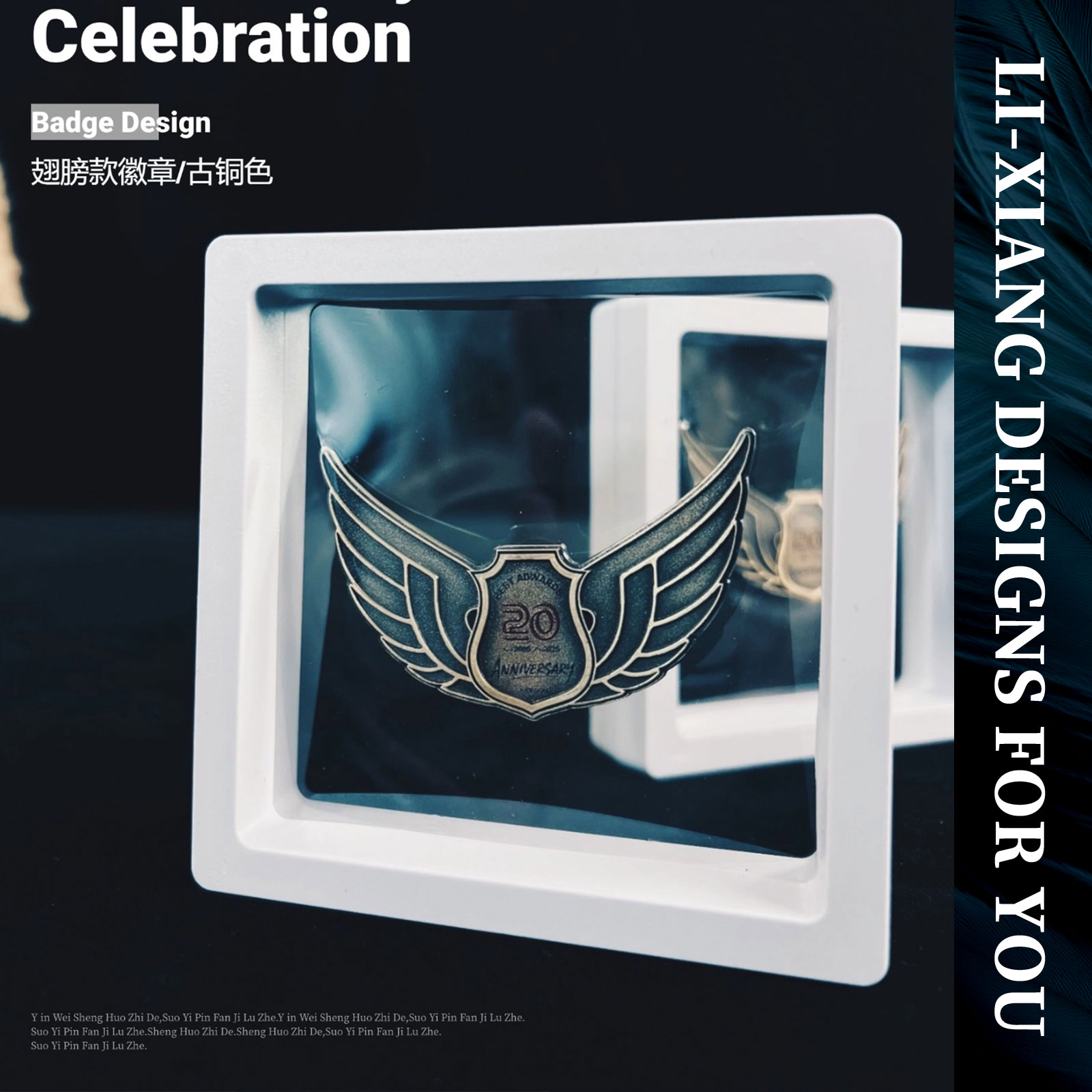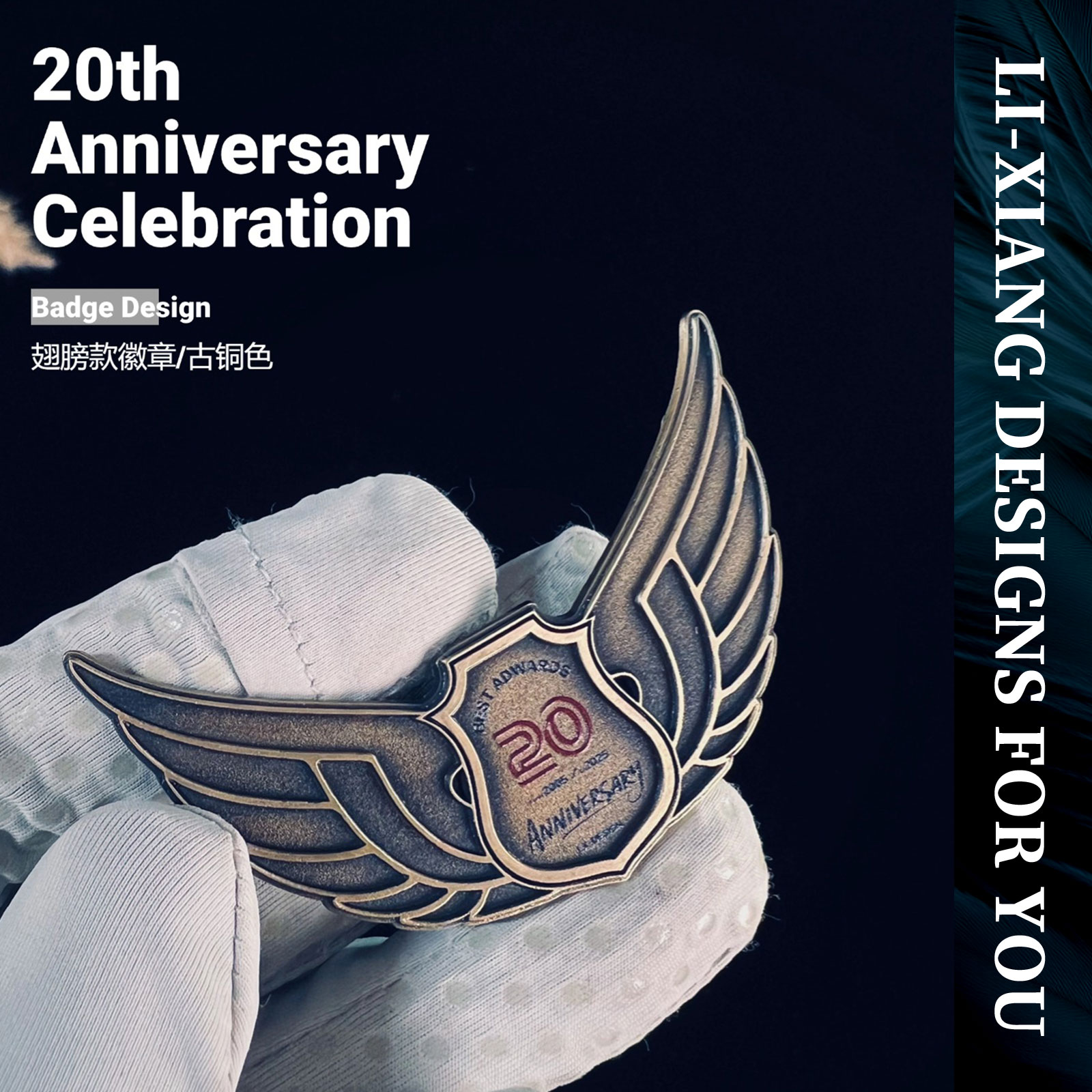 企业周年伴手礼翅膀造型金属浮雕立体徽章工牌定制LOGO配盒