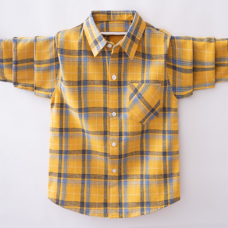 磨毛休闲春秋翻领格子衬衫
