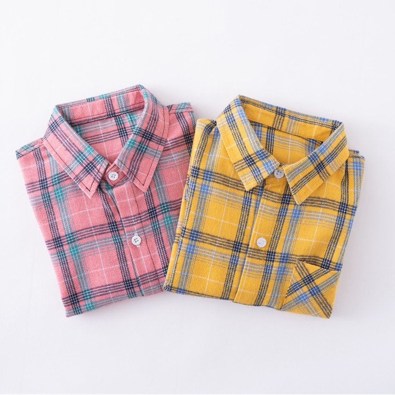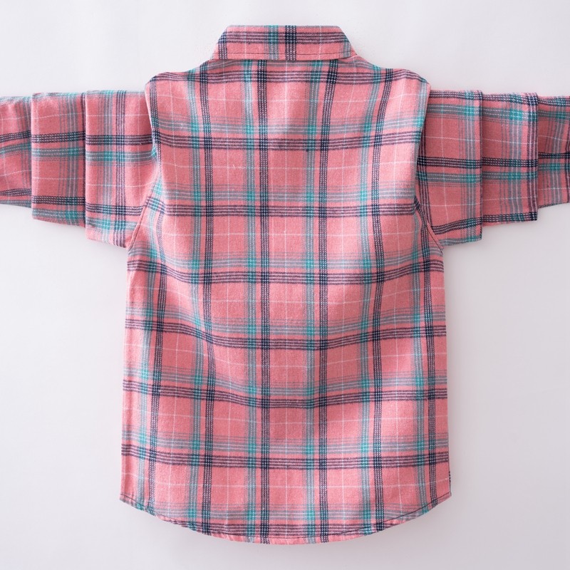 男孩磨毛长袖衬衫纯棉衬衣洋气休闲中大童粉色格子上衣春秋款潮
