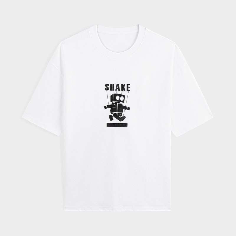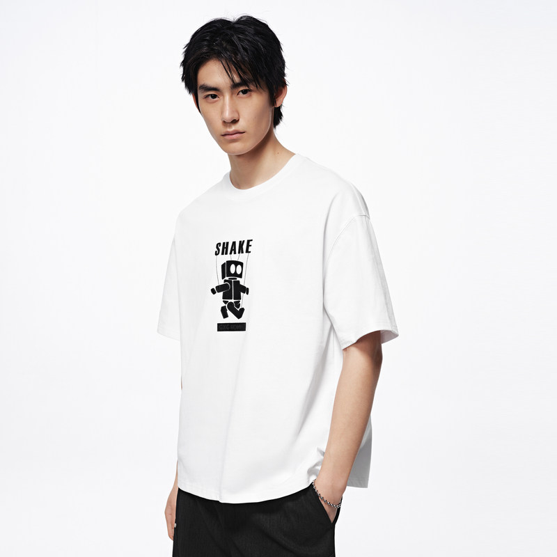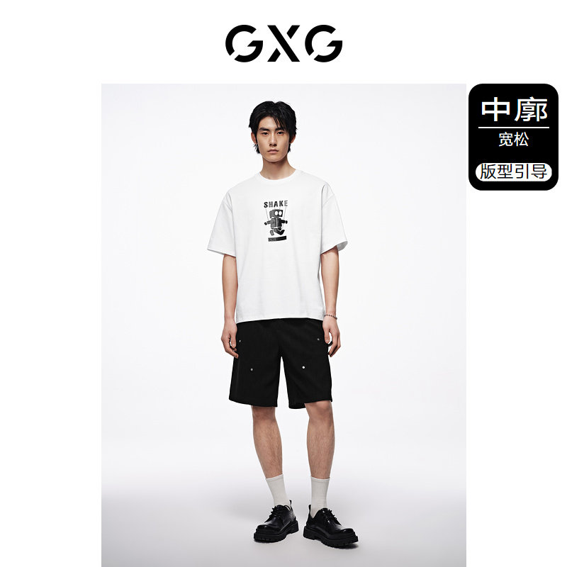 【重磅】GXG男装 235g白色图案印花纯棉休闲圆领短袖T恤 24夏新品