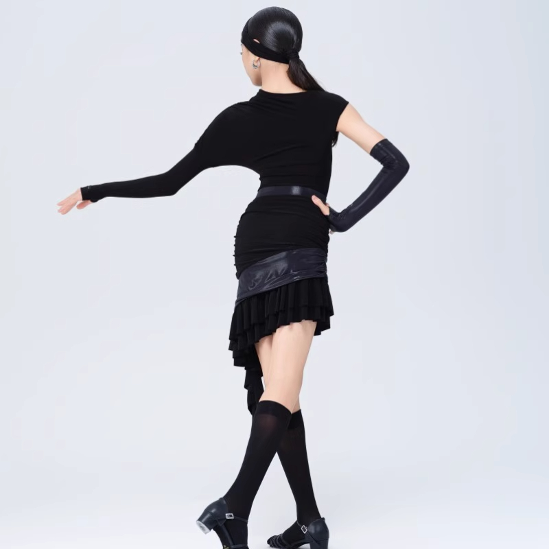WAVE未午拉丁舞服少儿单肩袖设计时尚分体国标舞裙练习套装练功服