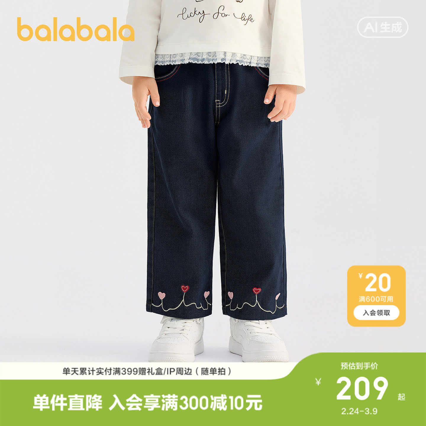 【商场同款】巴拉巴拉童装儿童长裤女童2026新春装爱心绣花牛仔裤