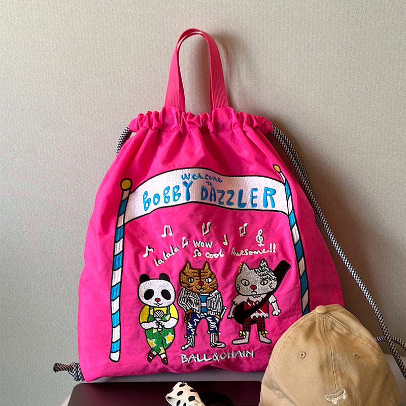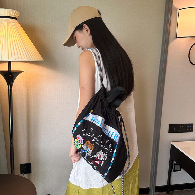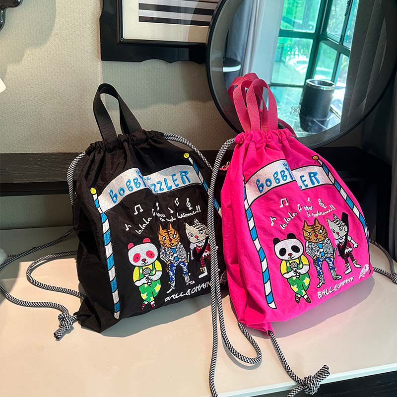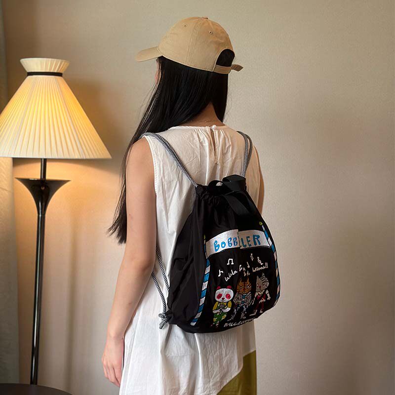 双肩包女ball chain刺绣背包轻便抽绳户外旅行包折叠包束口袋