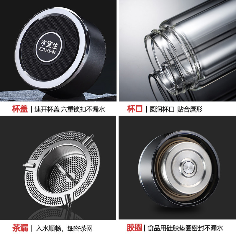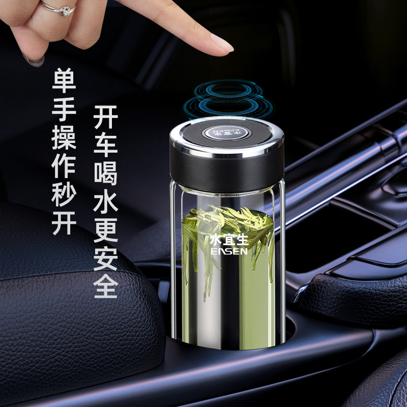 水宜生双层玻璃杯2025新款鹅蛋泡茶杯一键速开水杯车载杯子礼盒装