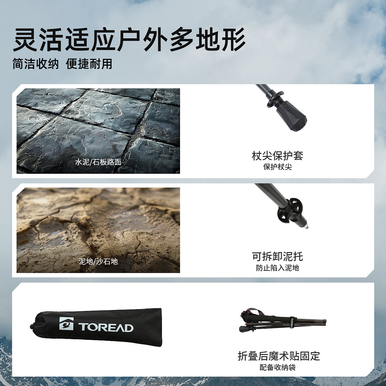 探路者康格碳纤维速开折叠登山杖户外徒步登山杖拐杖防滑轻便手杖