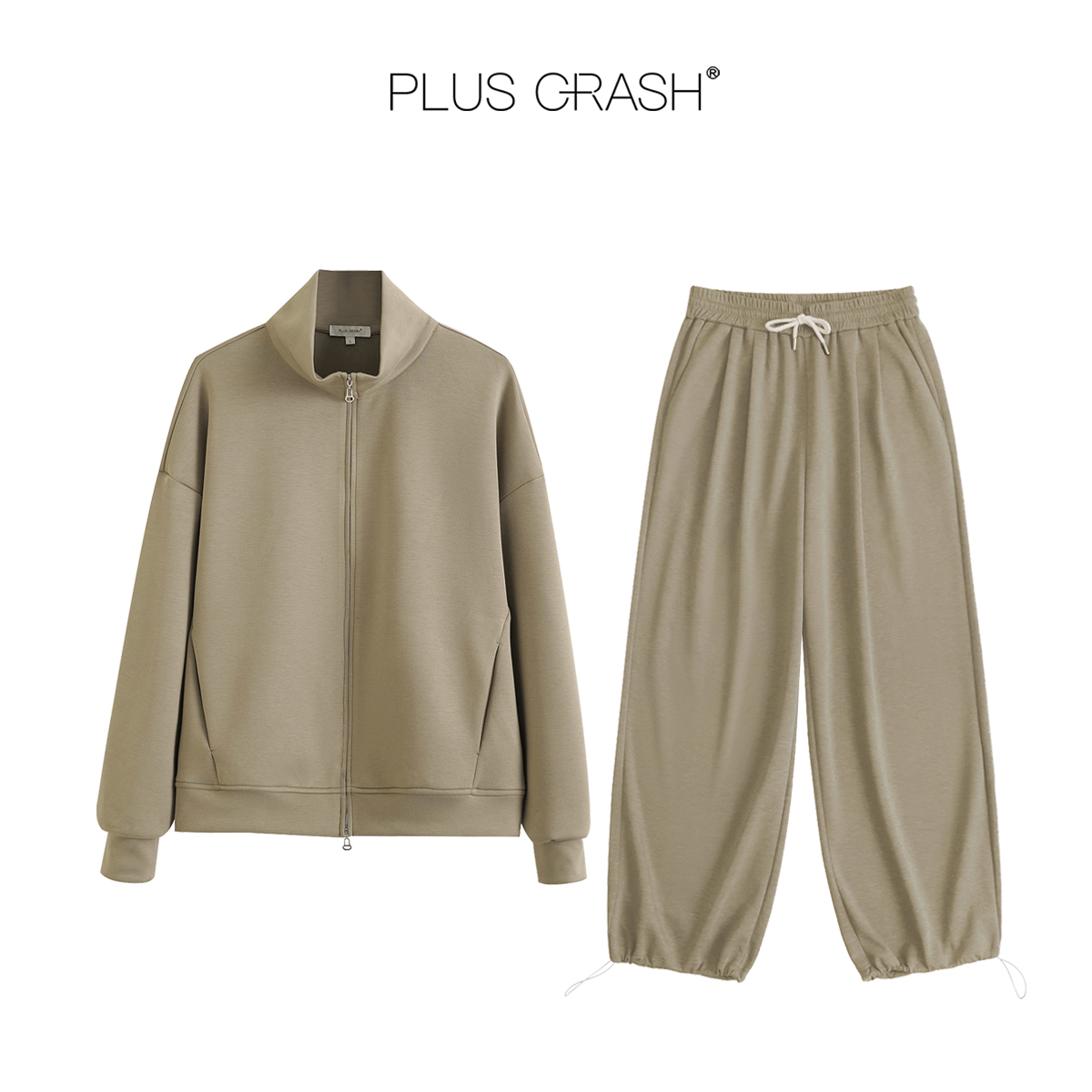 PLUS CRASH老钱风运动休闲外套锁边休闲百搭长裤套装男女同款