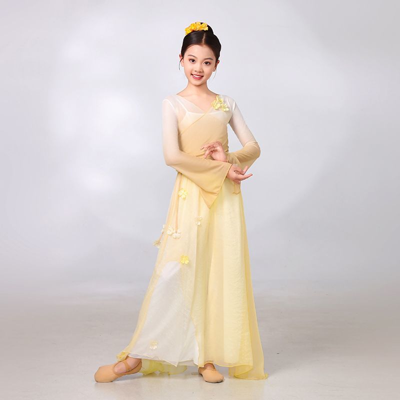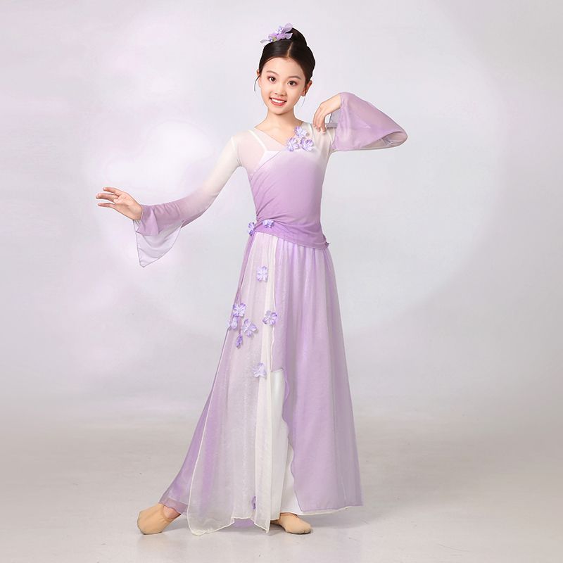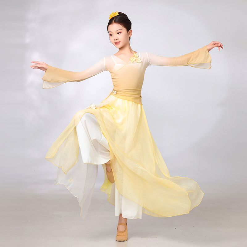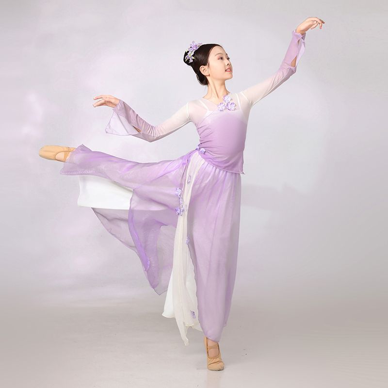 新款古典舞服装女童身韵舞蹈服中国舞飘逸纱衣练功服渐变色演出服