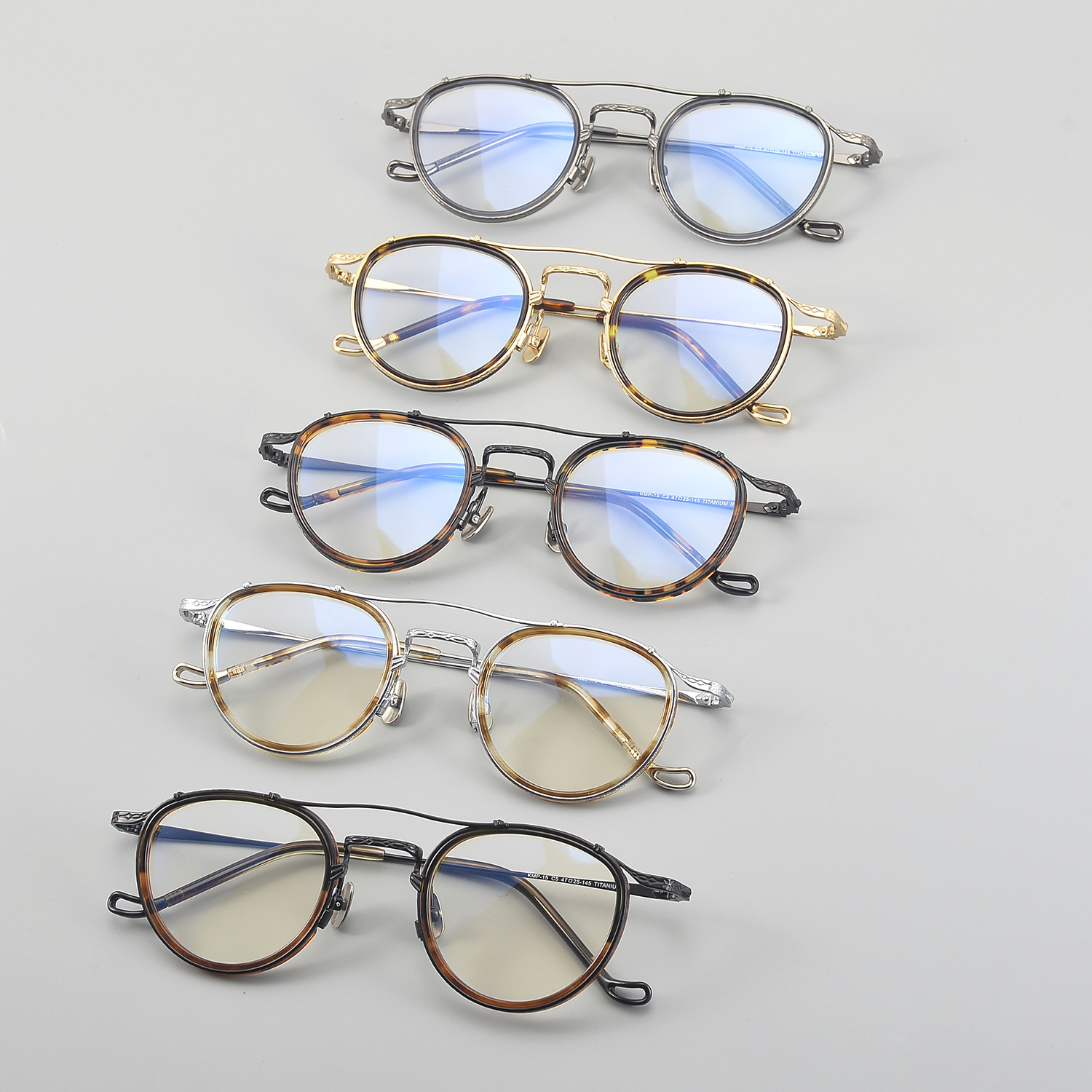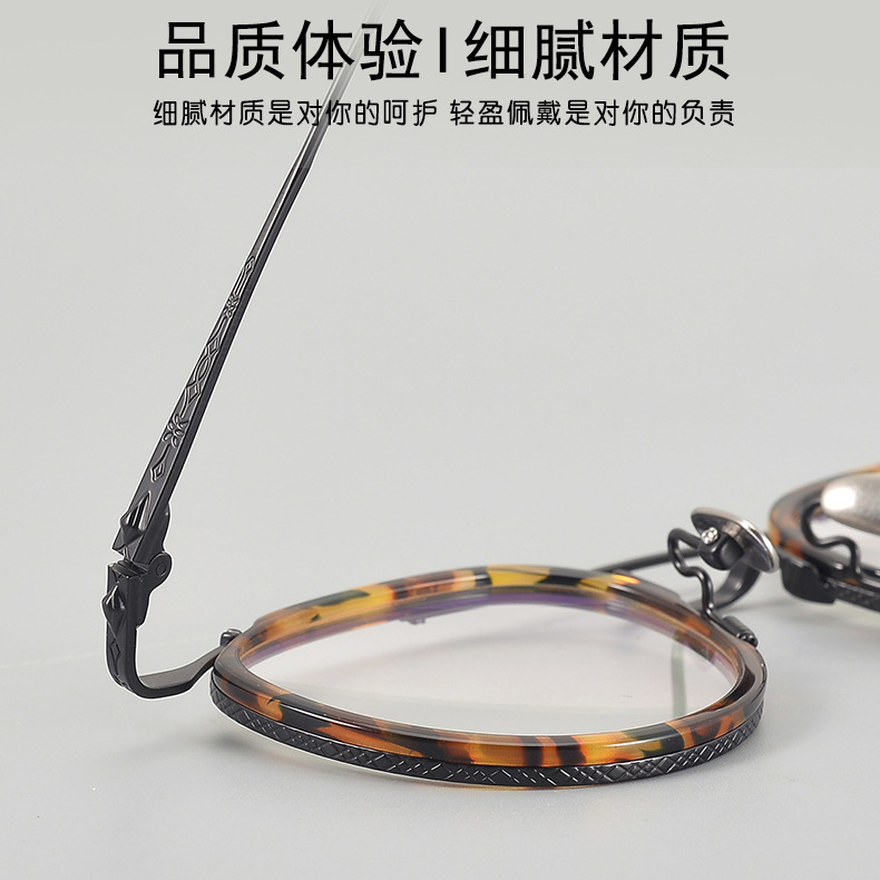 鎏金珐琅艺术眼镜女款轻奢双梁时尚款式纯钛超轻椭圆素颜眼镜女士