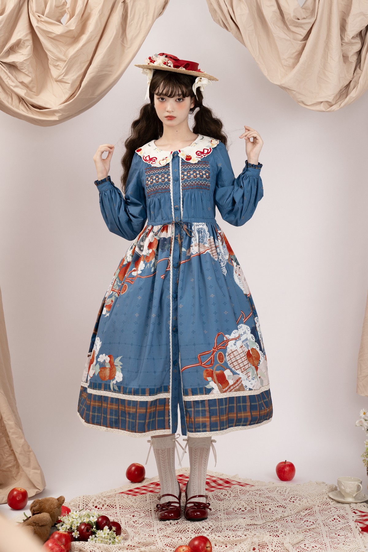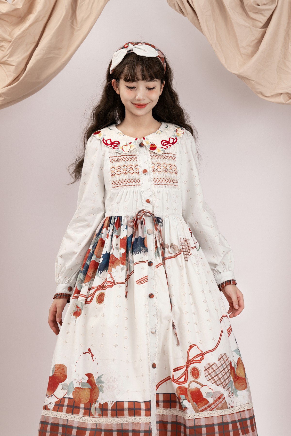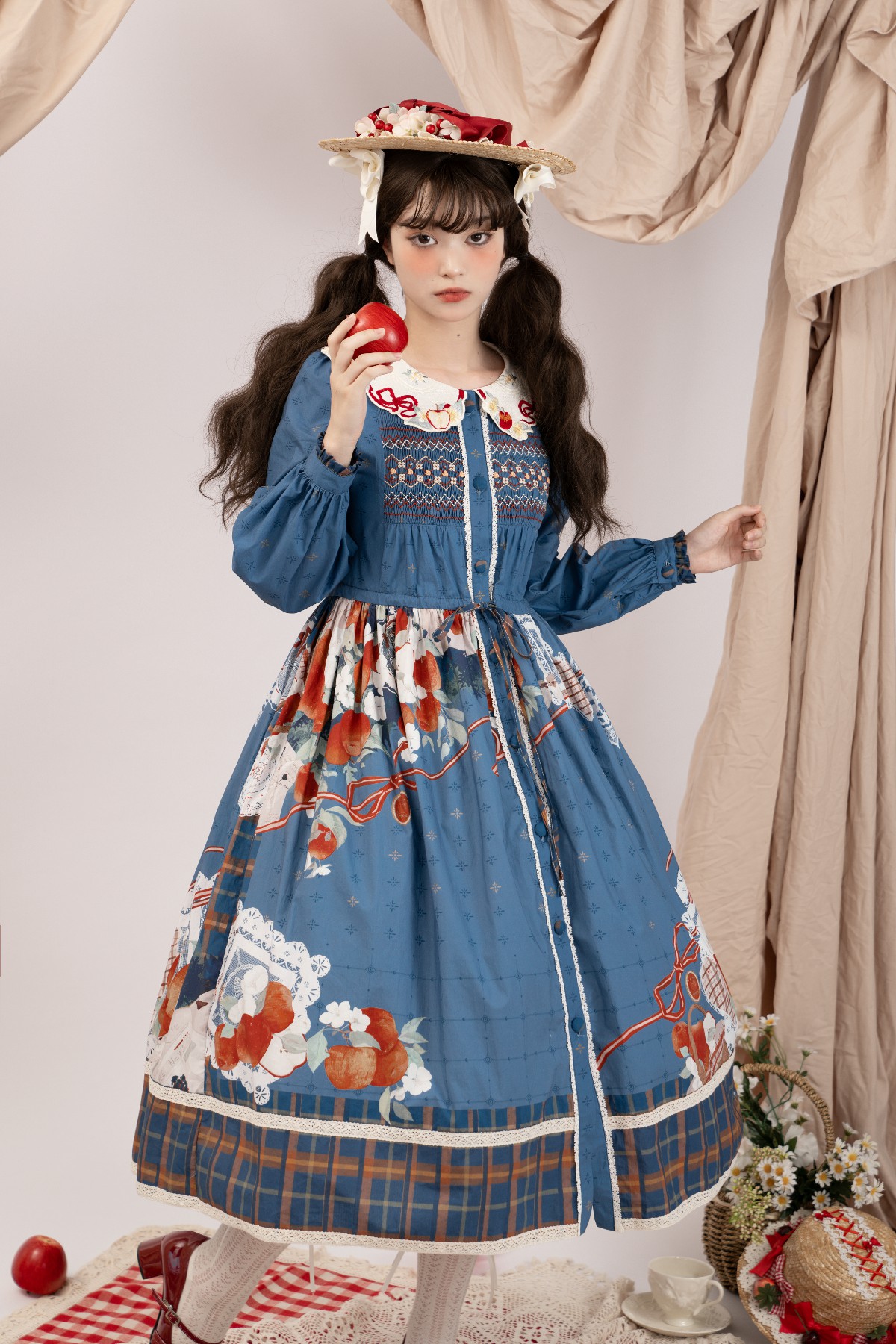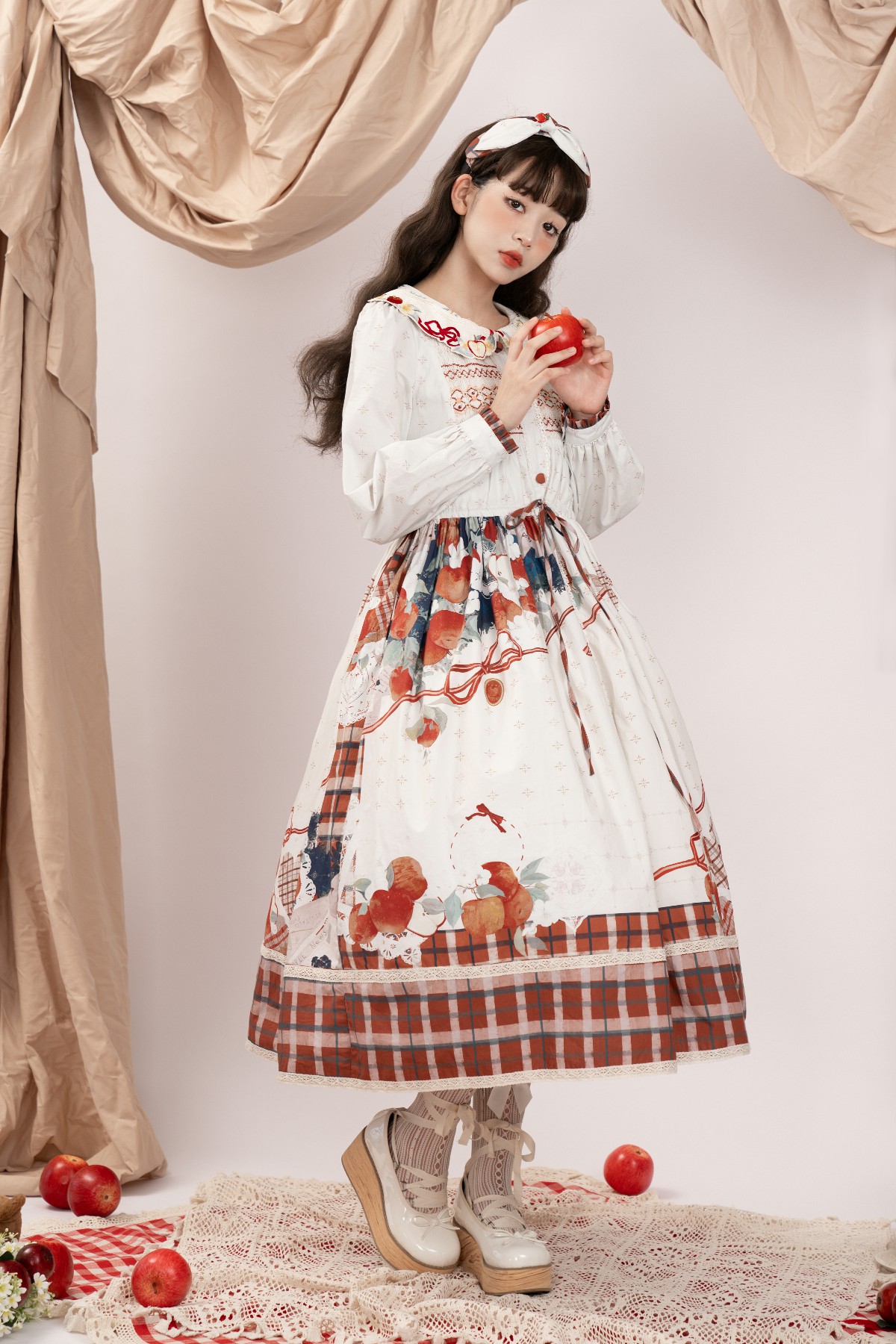 【林檎与花】全款现货长袖OP-原创秋装打揽刺绣苹果印花连衣裙