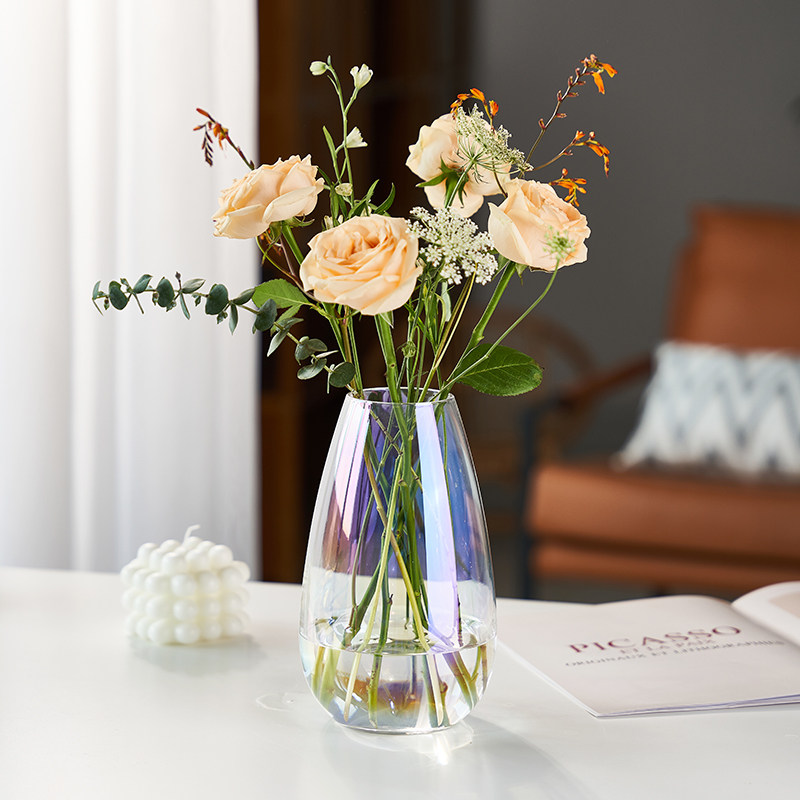新款小口玻璃花瓶透明轻奢客厅酒店插花玫瑰百合鲜花装饰花器摆件