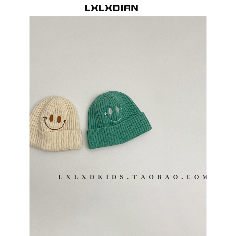 针织毛线帽笑脸刺绣宝宝帽子