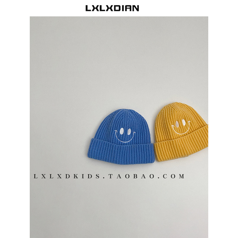 宝宝帽子秋冬可爱笑脸毛线帽简约百搭纯色套头帽男女童儿童针织帽