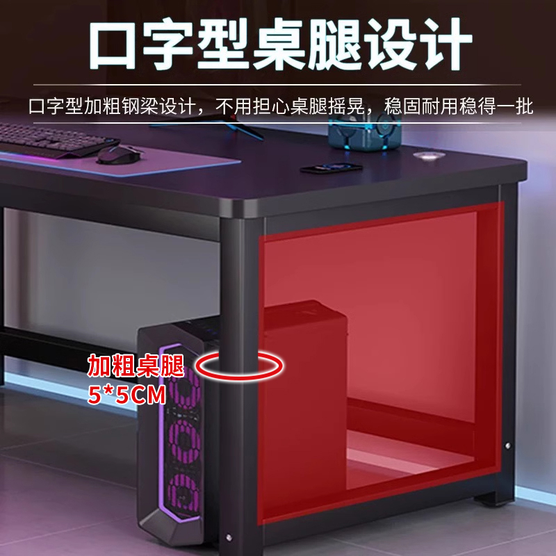 电脑桌台式卧室家用书桌游戏桌简易出租房用碳纤维纹双人电竞桌子