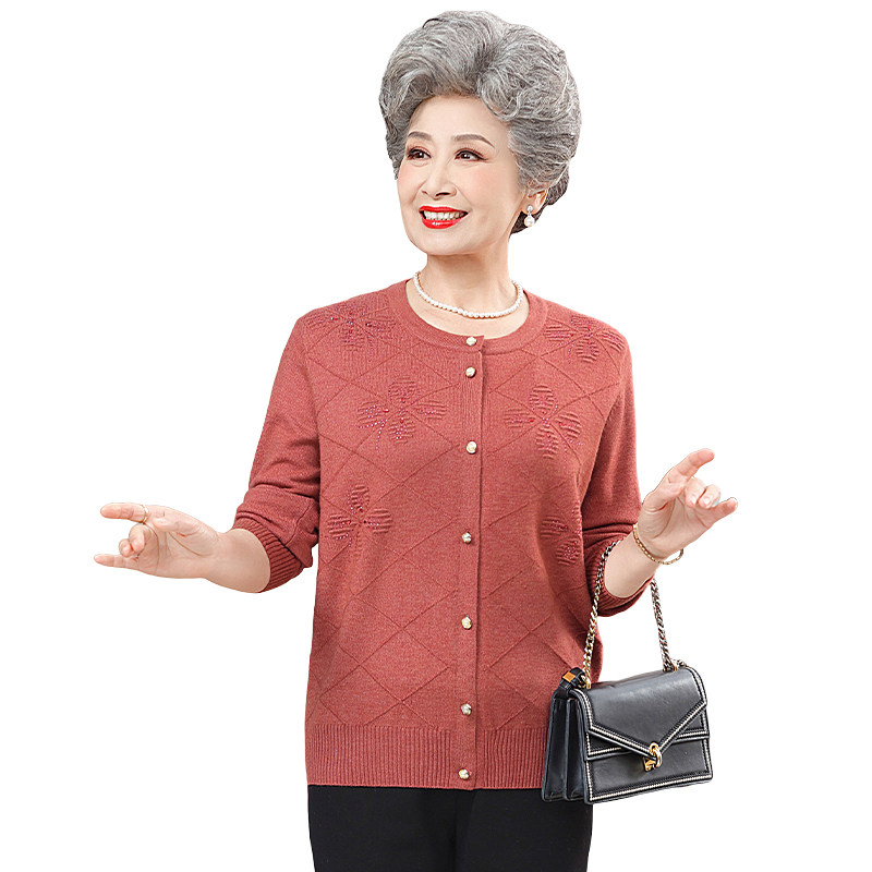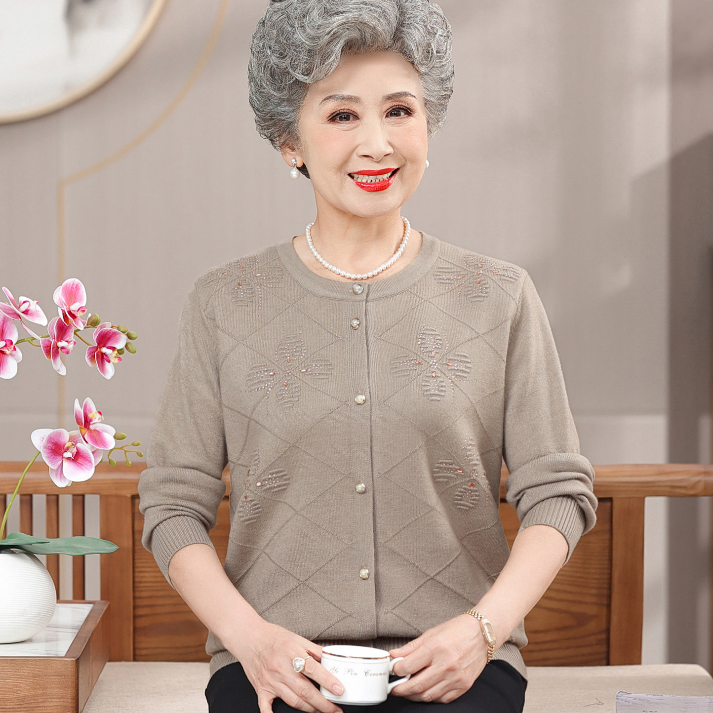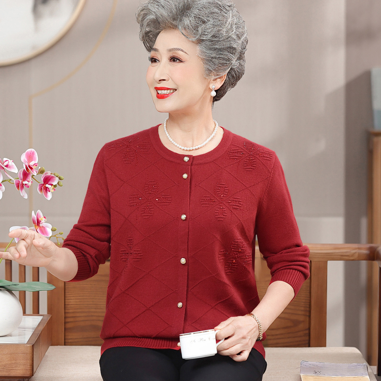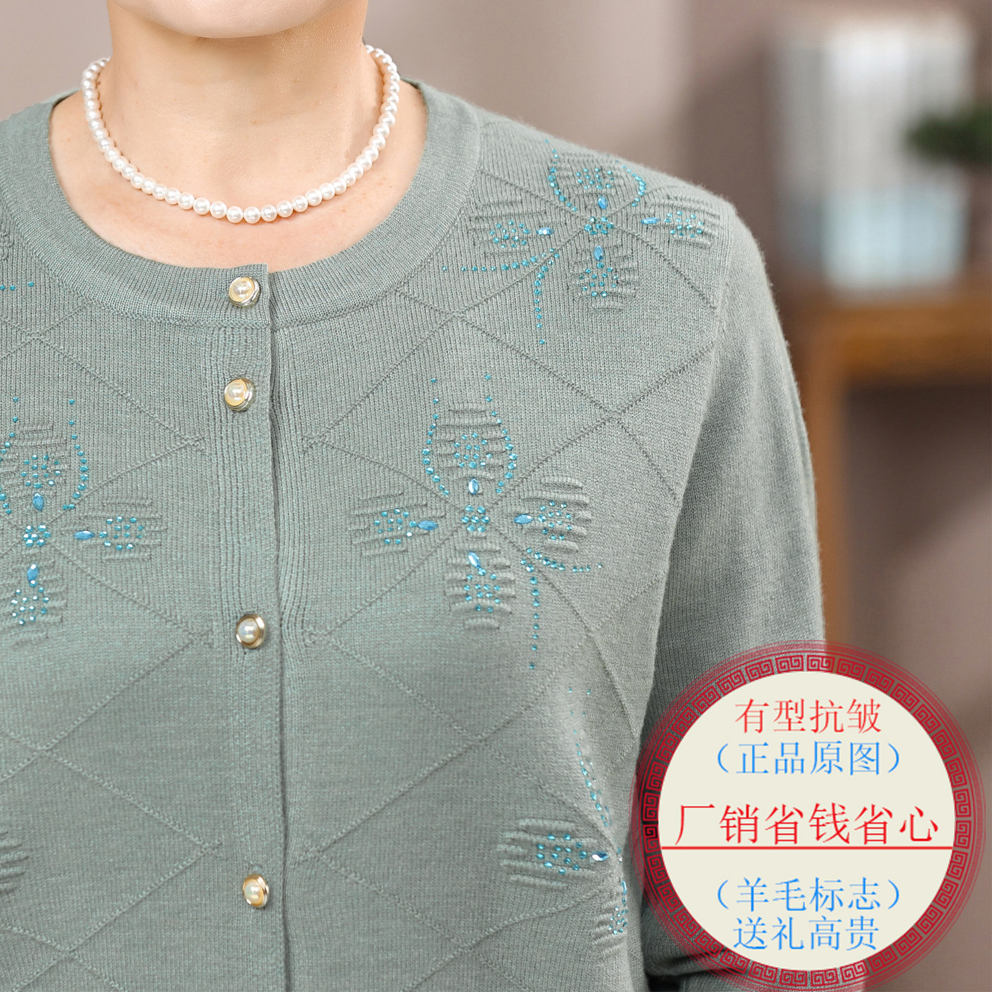 老年人秋季羊毛针织毛衣女外套妈妈开衫薄奶奶圆领长袖上衣服大码