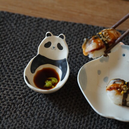 叶子手作熊猫手捏手绘咖啡豆勺子调味碟日式可爱蘸料碟