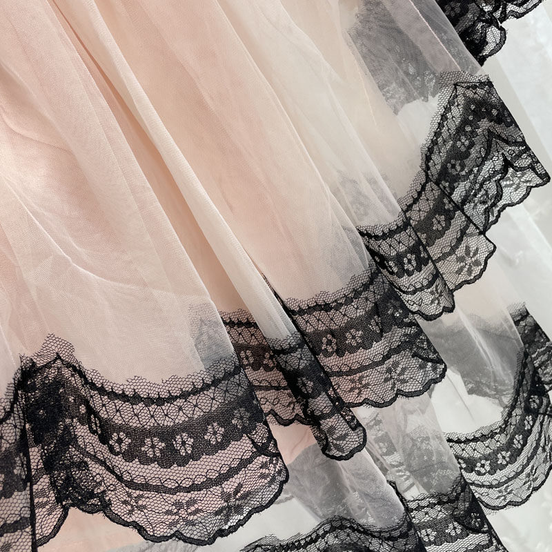 宝W品牌折扣童装中大童女童长袖连衣裙儿童春秋公主裙蕾丝网纱裙