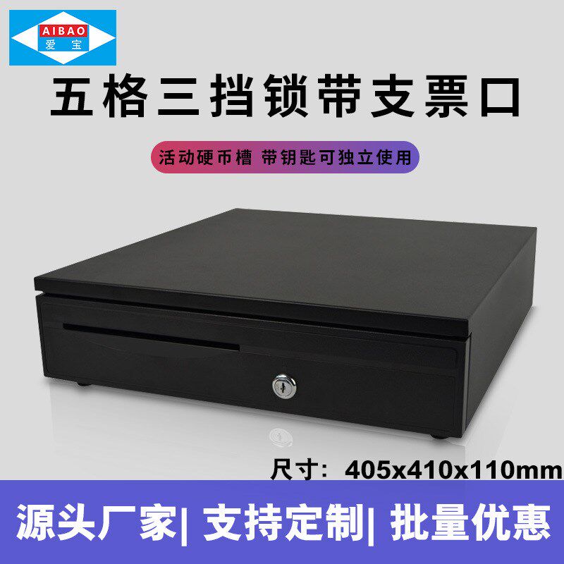 爱宝405钱箱商用小型收银盒五格三档通用多功能现金盒带锁收银箱