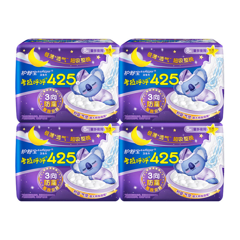 护舒宝考拉卫生巾量多夜日用超长425mm棉柔防漏超薄透气大姨妈巾
