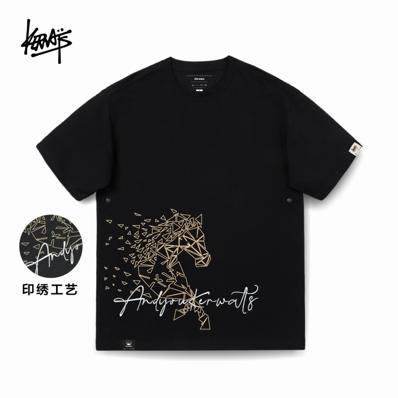 KERWATS品牌红色t恤男女印刺绣小马图案短袖本命年圆领打底衫大码