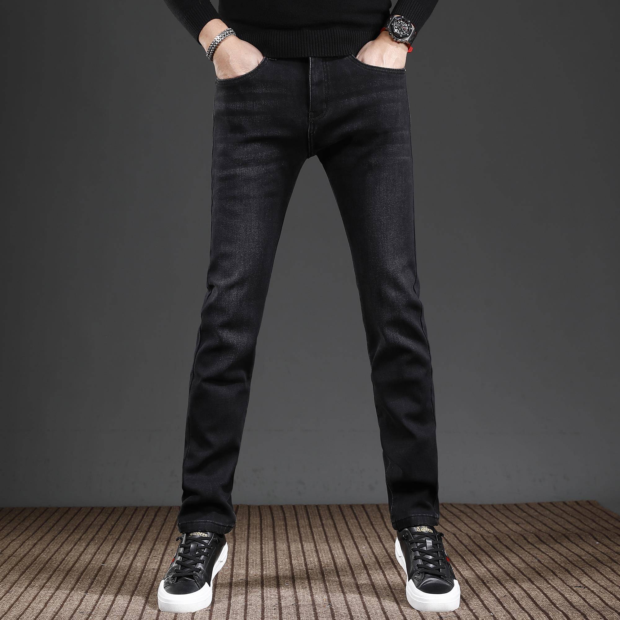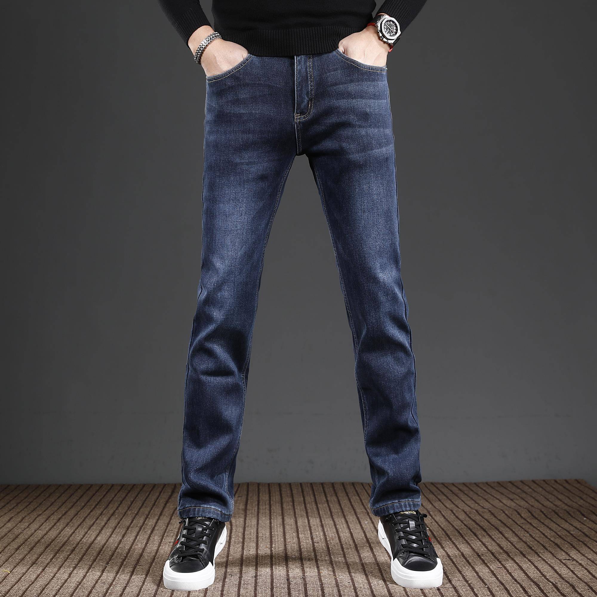 蓝色加绒牛仔裤男款直筒秋冬款2025新款弹力修身男士裤子冬1018h