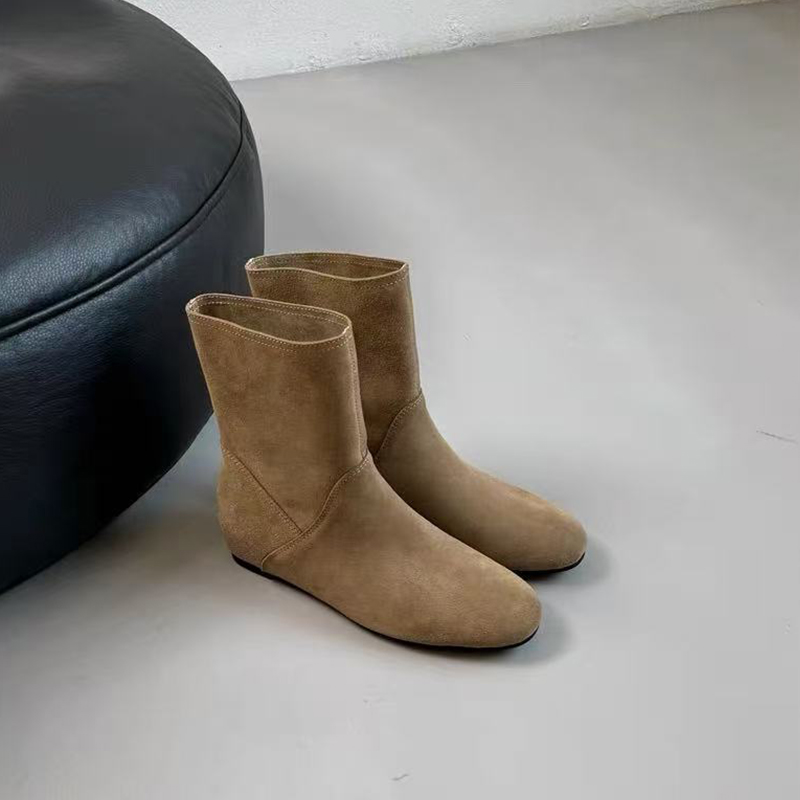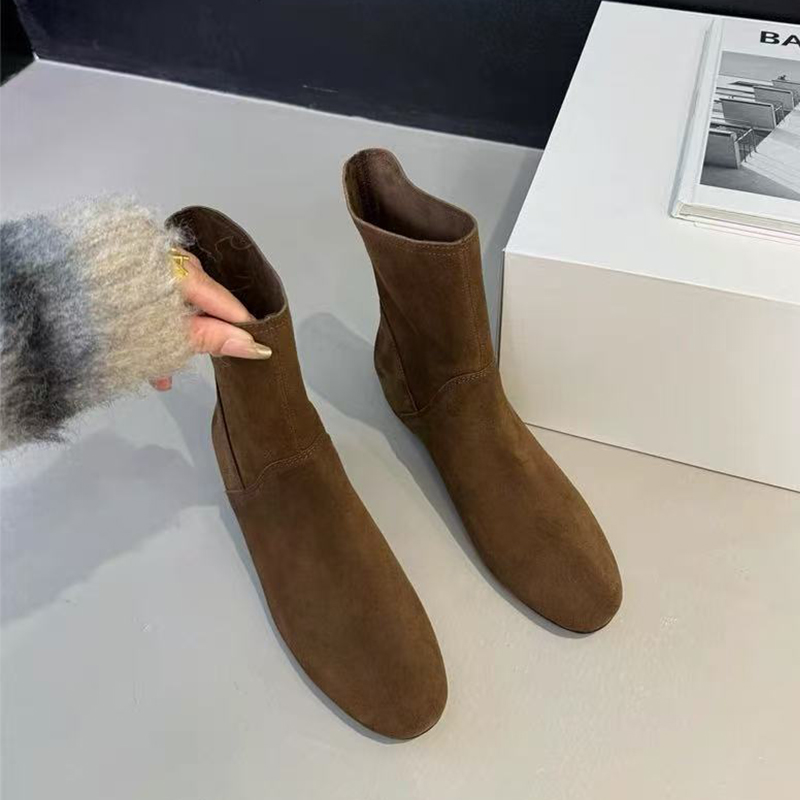 短靴女新款靴子2025年秋冬季圆头女靴平底内增高短筒靴小众瘦瘦靴