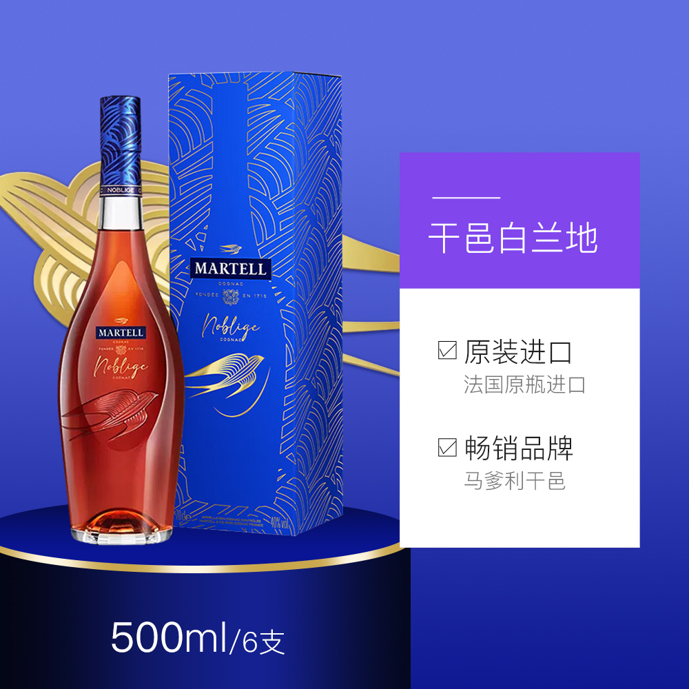 【自营】Martell/马爹利 名士500ml*6 干邑白兰地 进口洋酒行货