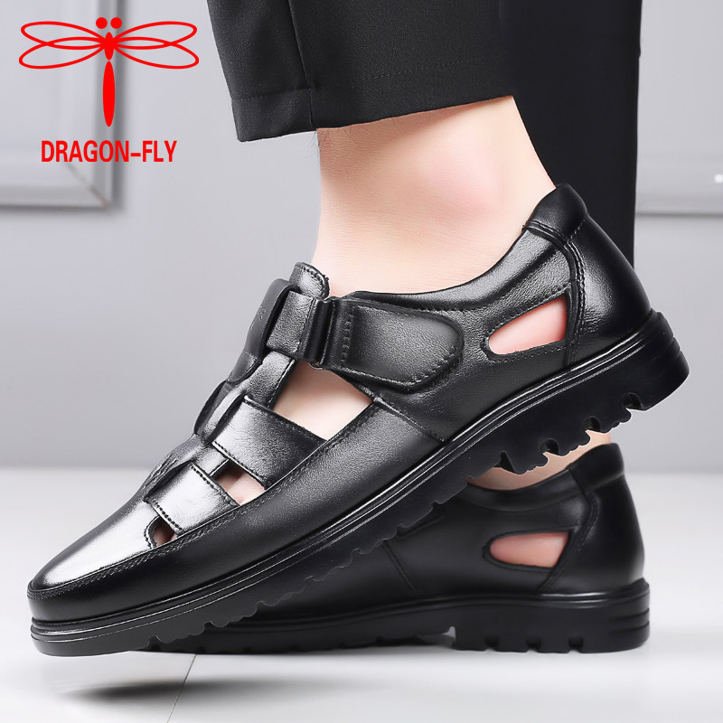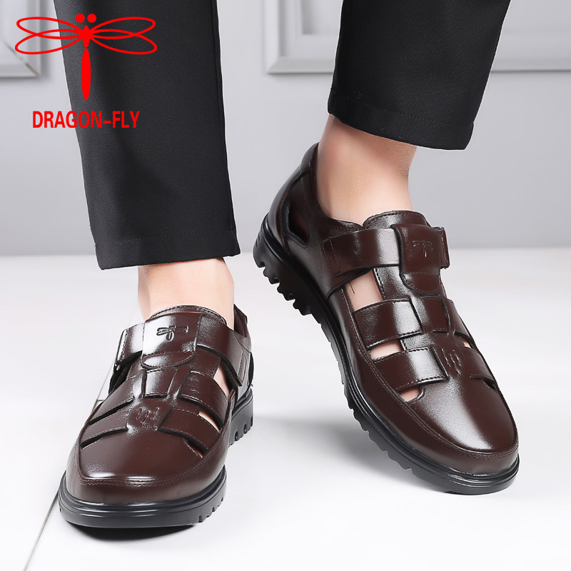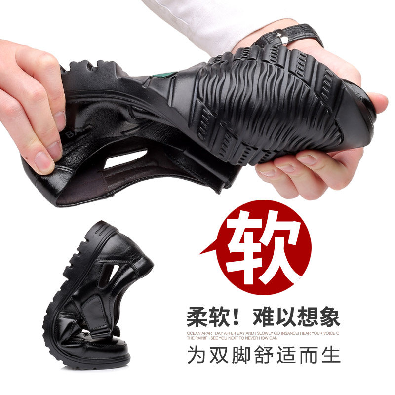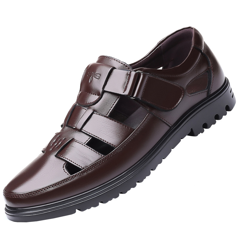 夏季真皮包头凉鞋男中年防滑透气男士镂空皮鞋中老年爸爸鞋洞洞鞋