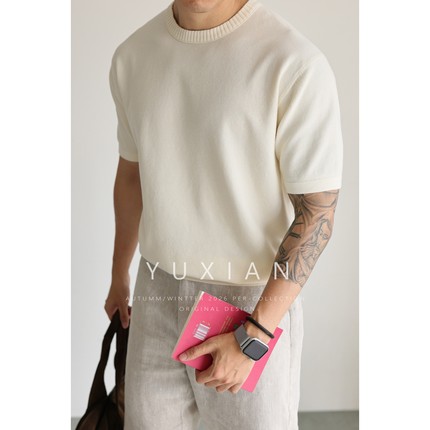 【60支强捻棉】意式老钱纯棉珠地针织罗纹短袖休闲商务圆领T恤男