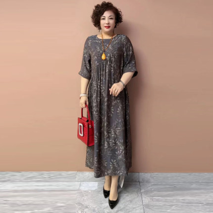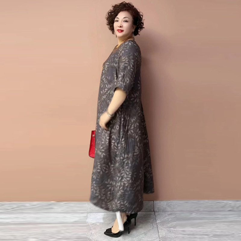 妈妈花色宽松大码200斤连衣裙