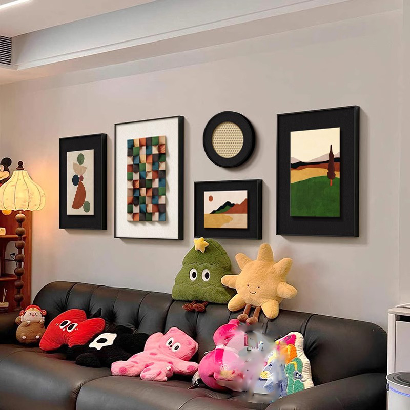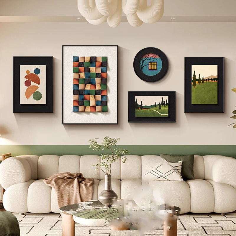 意式简约客厅组合装饰画法式复古沙发背景墙挂画中古抽象艺术壁画