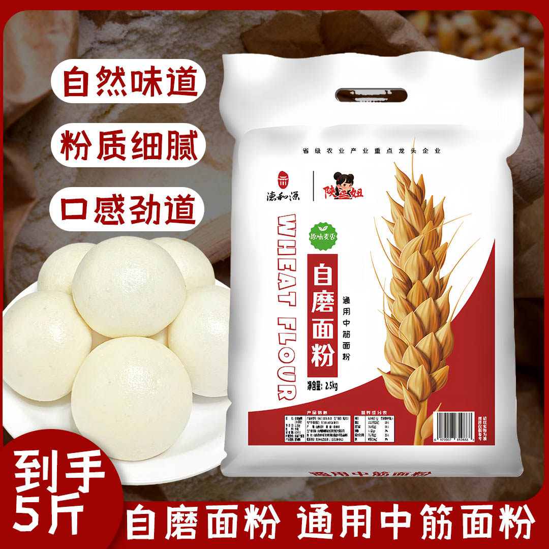 5斤自磨中筋面粉家用麦芯粉饺子2.5kg无添加小麦粉馒头新国标优质