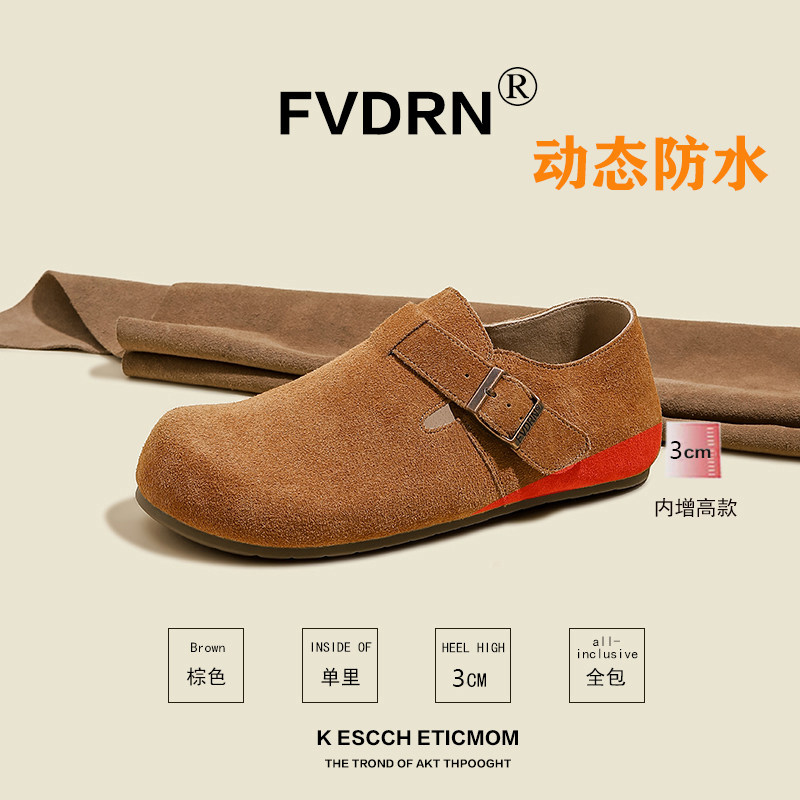 皮毛一体动态防水勃肯鞋女平底单鞋2025新款秋冬软底牛皮博肯鞋