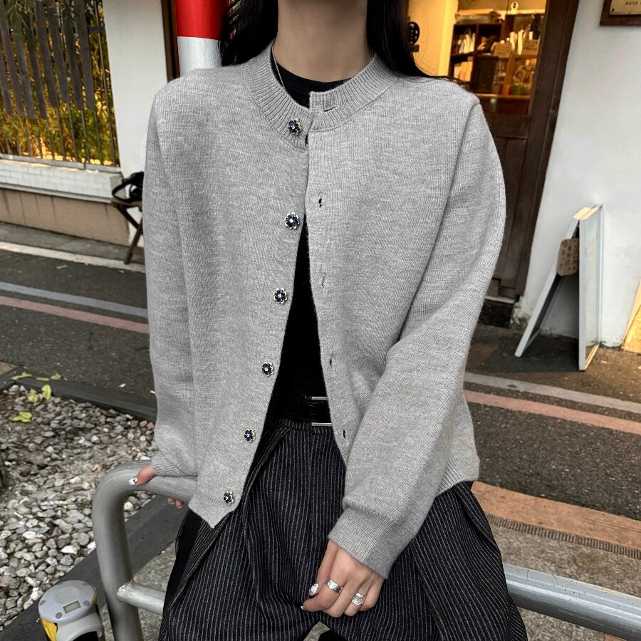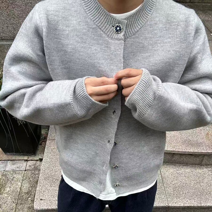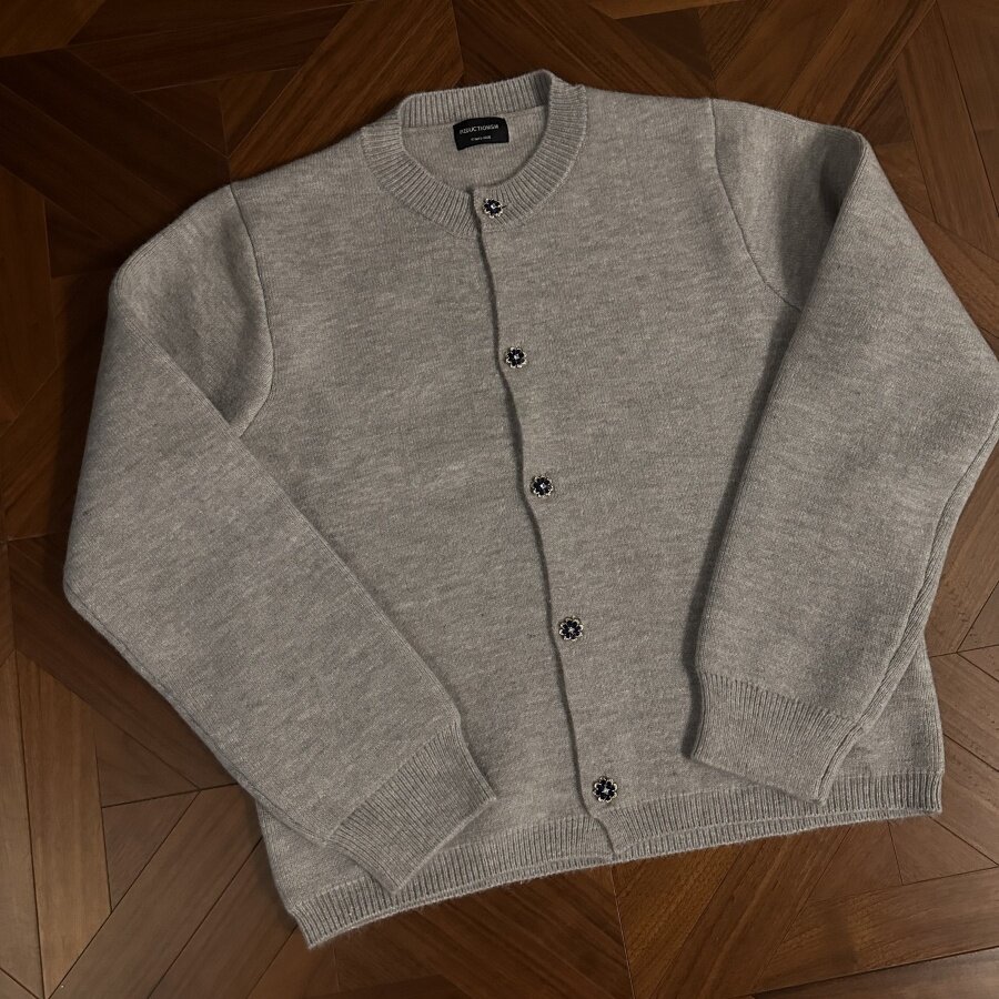 RTIMFD泽西格雷仿羊绒水钻纽扣毛衣cleanfit氛围老钱针织开衫外套