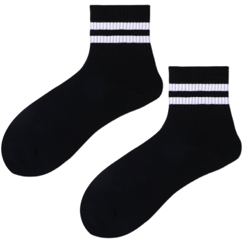 4双装袜子男女两条杠运动风中筒袜简约黑白色春夏季条纹新疆棉袜
