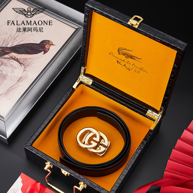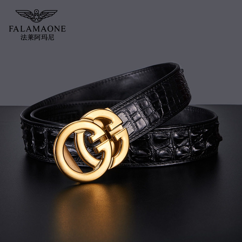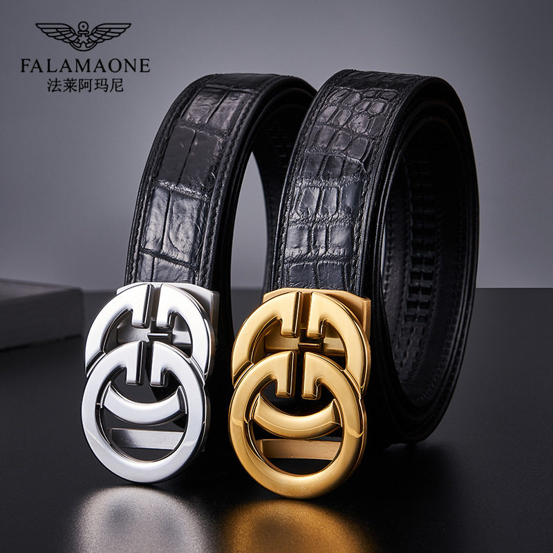 法莱阿玛尼皮带男自动扣牛皮时尚休闲款裤带简约鳄鱼纹男式腰带