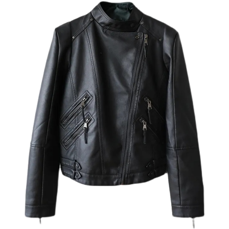 2025新款春秋立领皮衣女短款修身拉链时尚机车PU皮夹克长袖外套潮