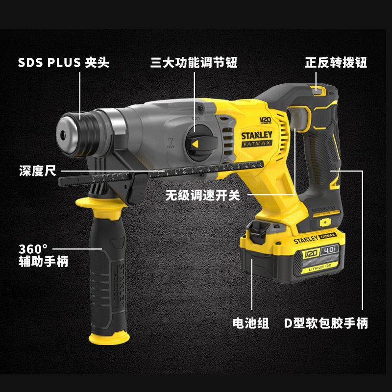 史丹利电锤钻电镐电钻三合一锂电充电20V无刷大功率打混凝土冲击