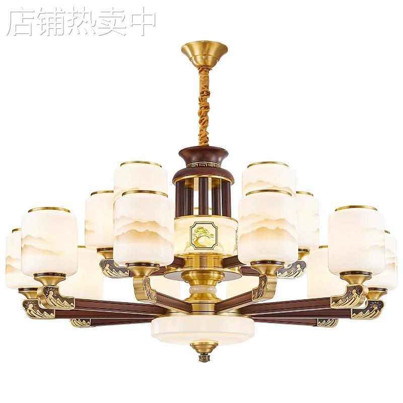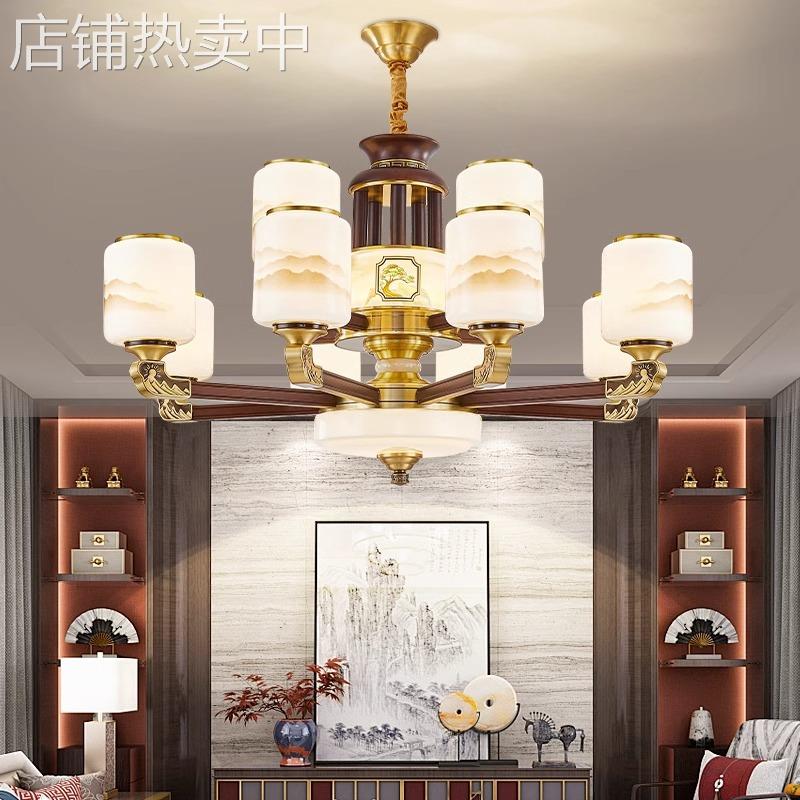 新中式全铜吊灯客厅灯中国风别墅复式楼大气餐厅乌金木2024年新款