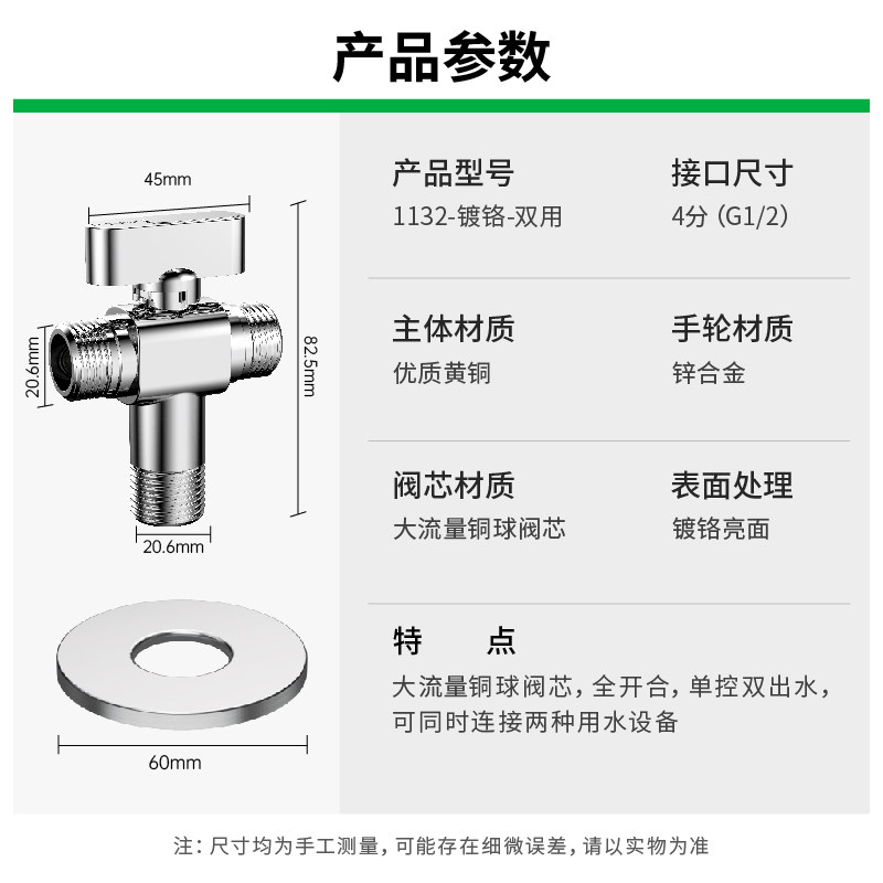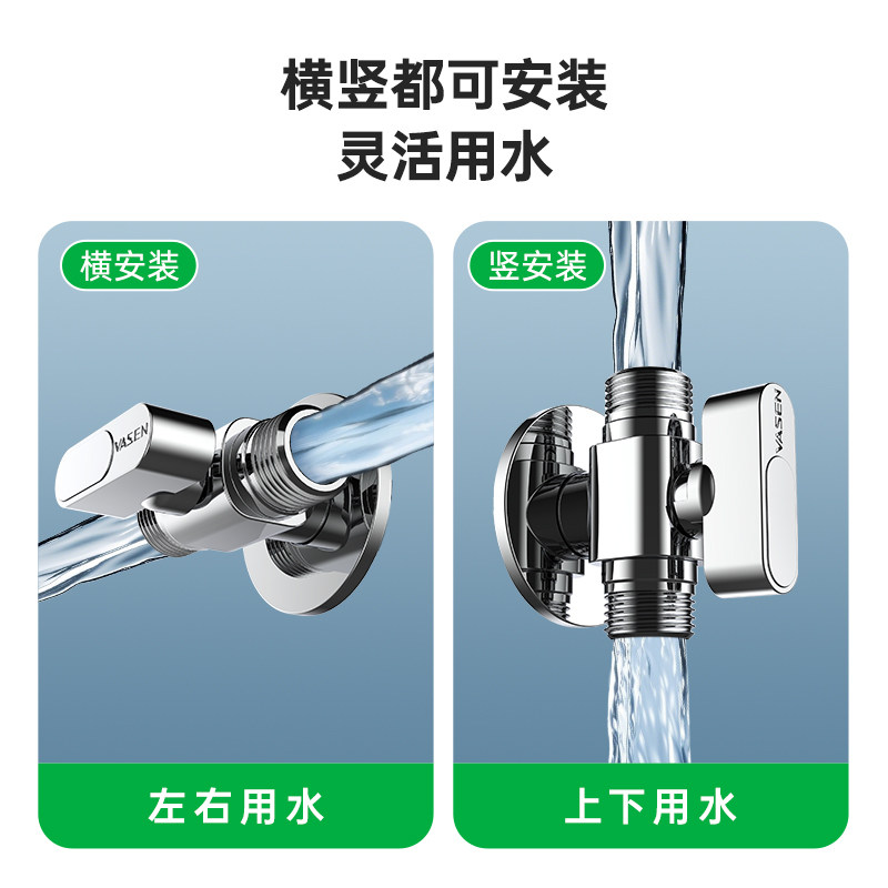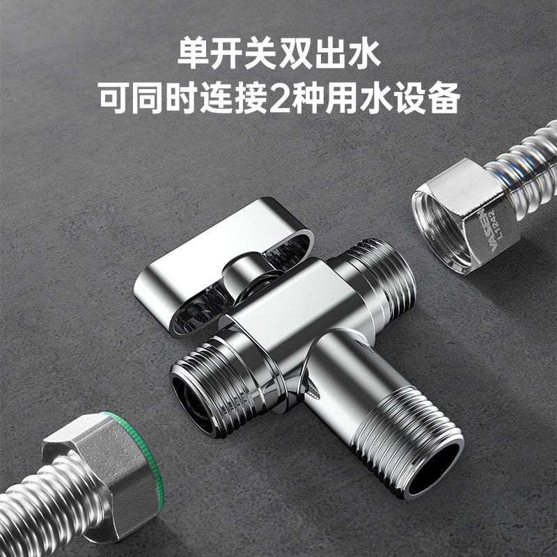 伟星三通角阀 球芯大流量一进二出双出水 全铜冷热水通用球阀
