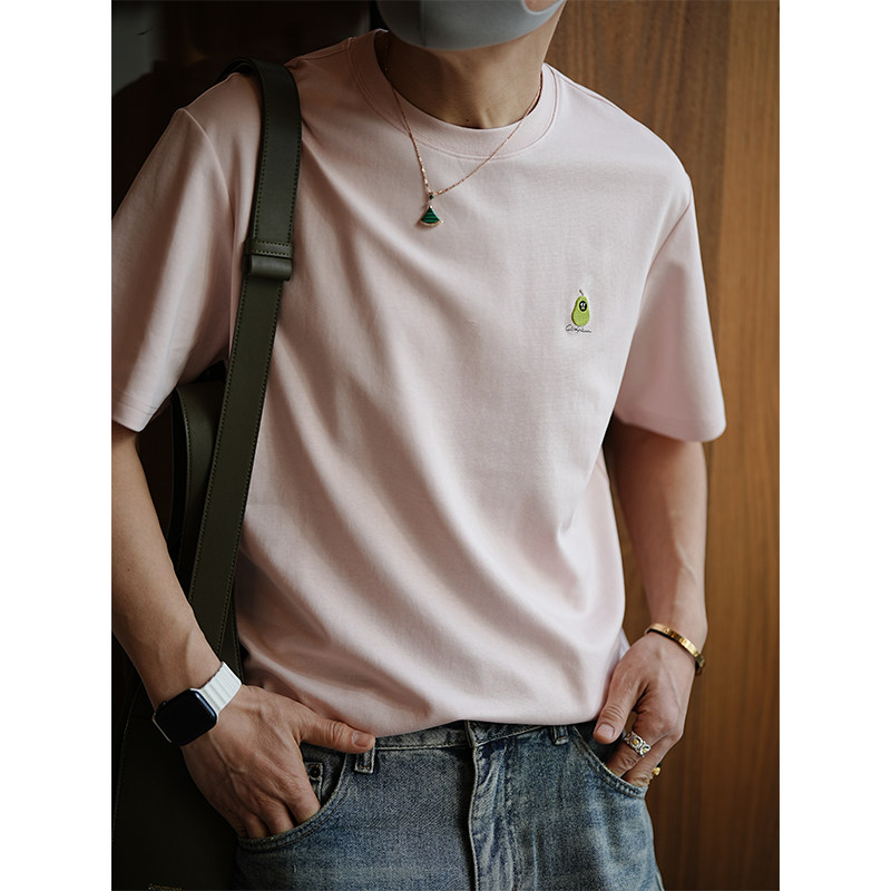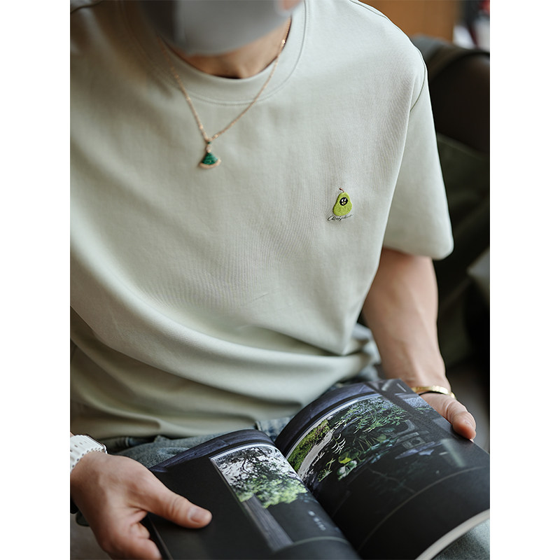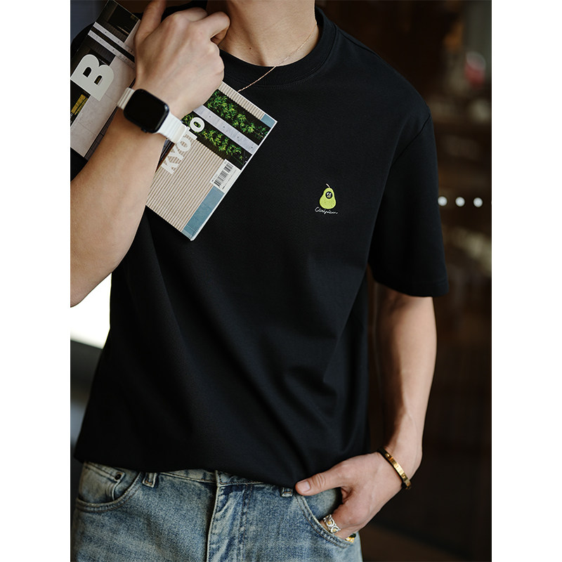 港风高级感精致卡通绣标短袖T恤男夏季潮流基础款简约百搭圆领衫