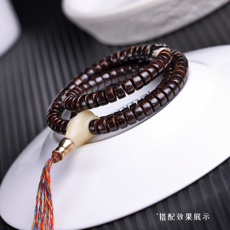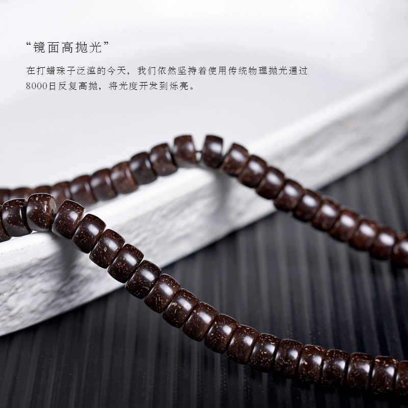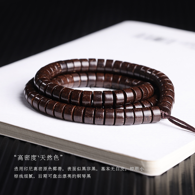 印尼老料原生态椰蒂直切药片108颗珠手工高抛棕色文玩佛珠手串链